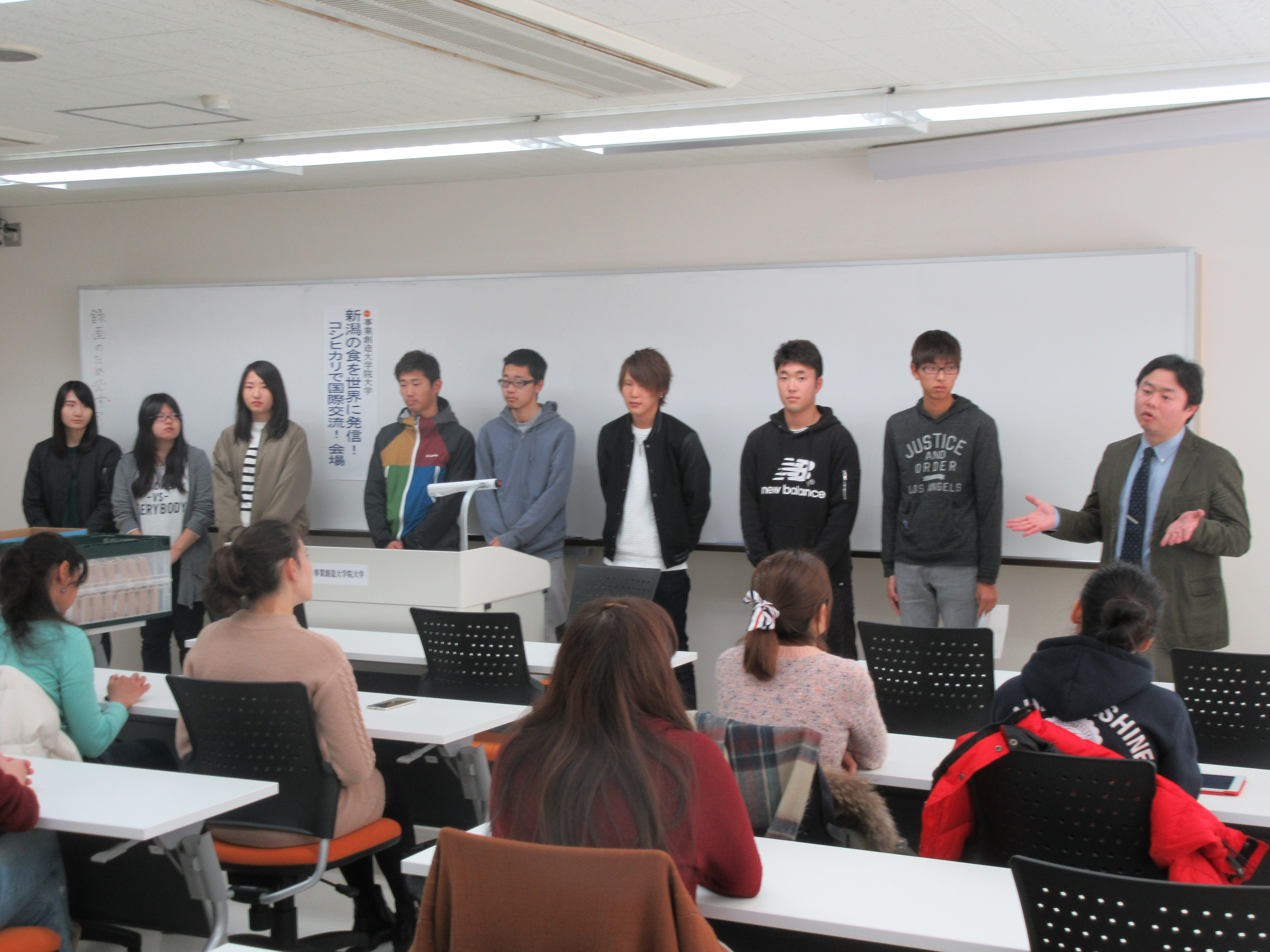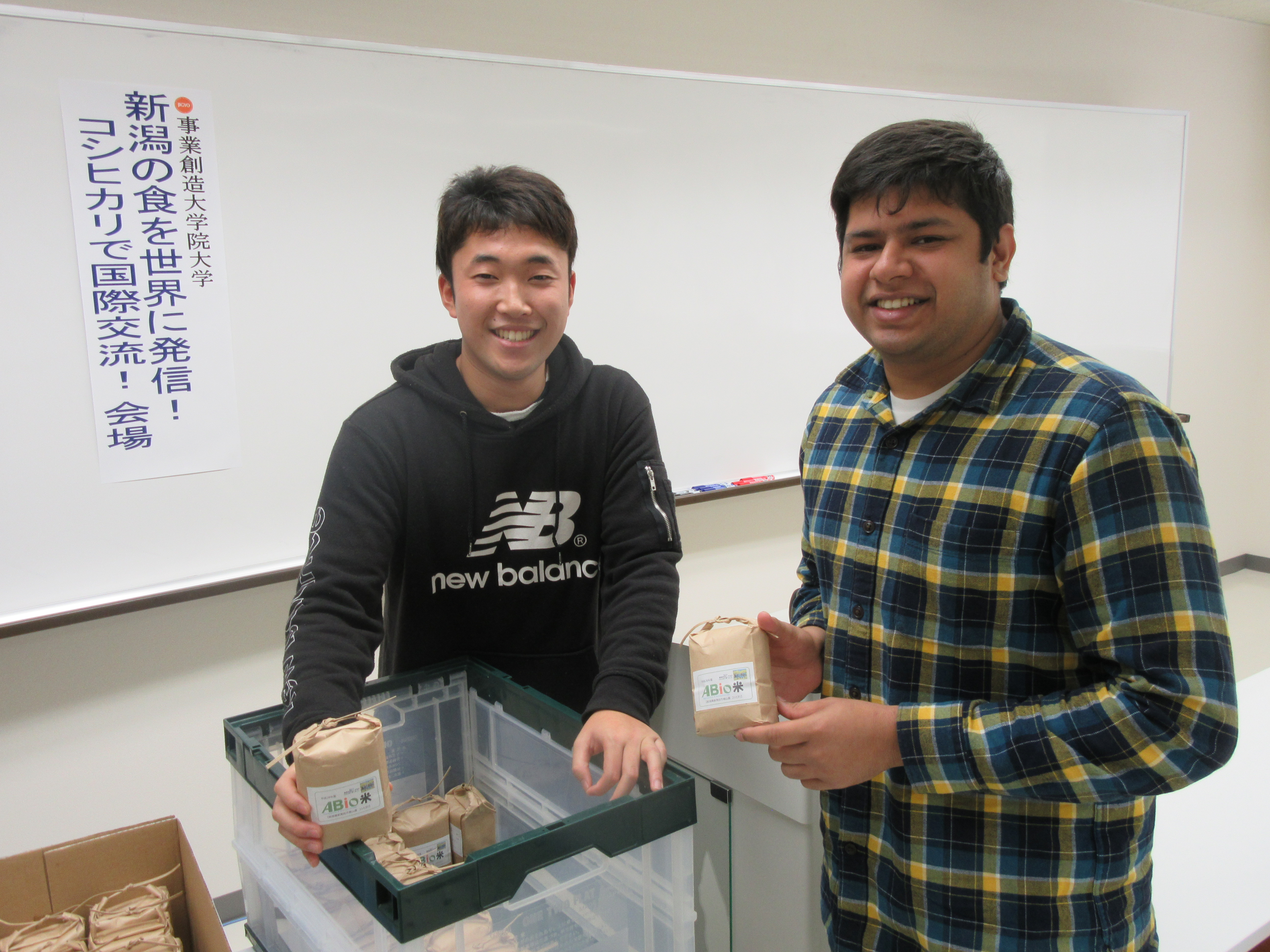 2016年12月8日(火)、事業創造大学院大学で本学外国人留学生と新潟農業・バイオ専門学校(ABio)による「新潟の食を世界に発信!コシヒカリで国際交流!留学生との国際交流会」が開催されました。