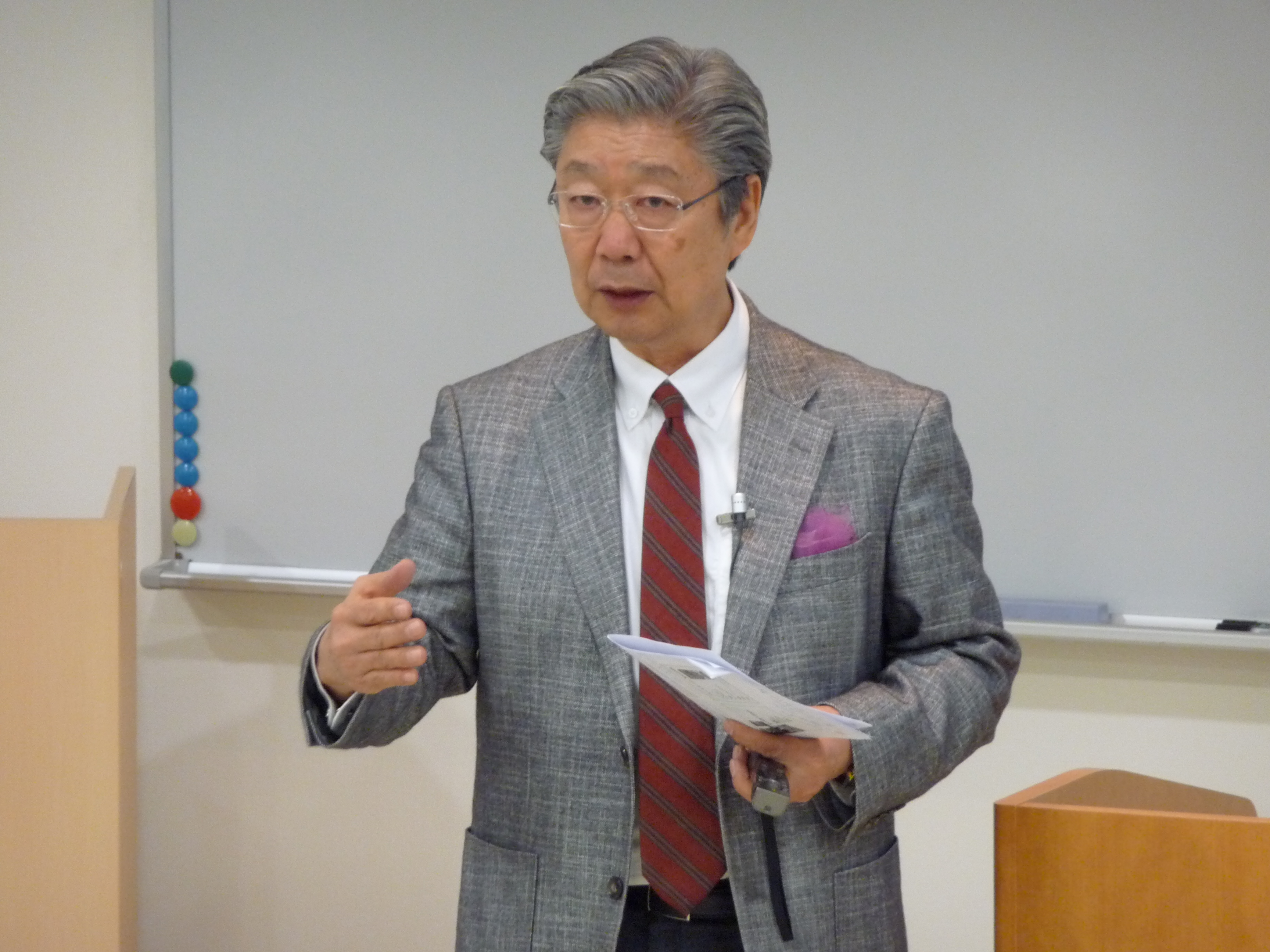株式会社アドバネクスは45年前のアメリカ進出をはじめに現在、海外に13の拠点をもっています。加藤雄一 客員教授は長年海外進出に携わってきた経験をもとに、グローバリゼーションにおいて重要なこと、日本企業のグローバリゼーションでの問題点、グローバリゼーションを力にすることなどについて講義されました。