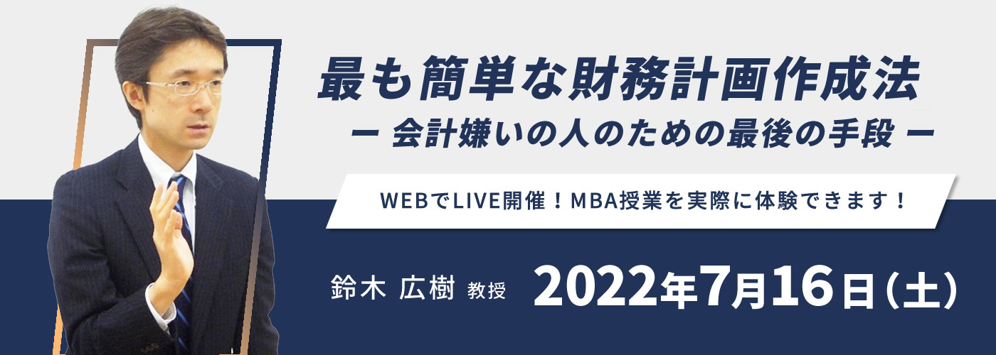 7/16(土)MBA体験授業「最も簡単な財務計画作成法」~会計嫌いの人のための最後の手段~