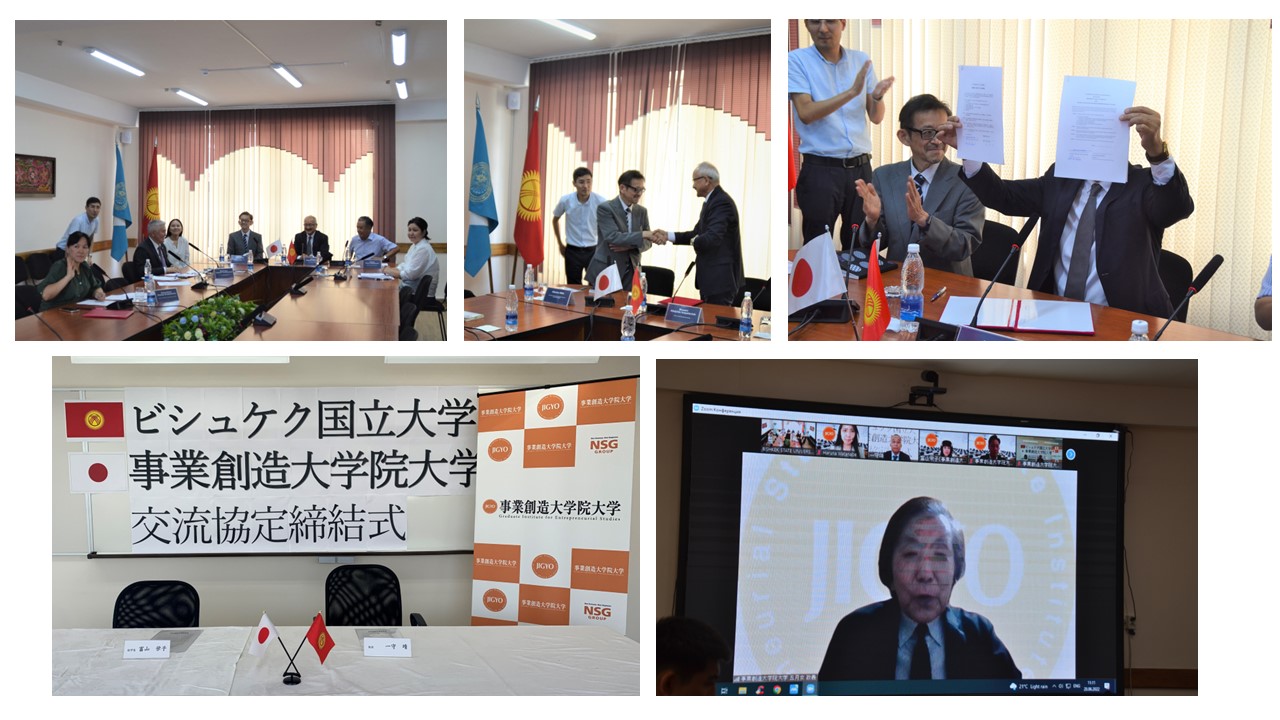2022年6月28日事業創造大学院大学は、キルギス共和国のビシュケク国立大学と大学間学術交流協定を締結しました。