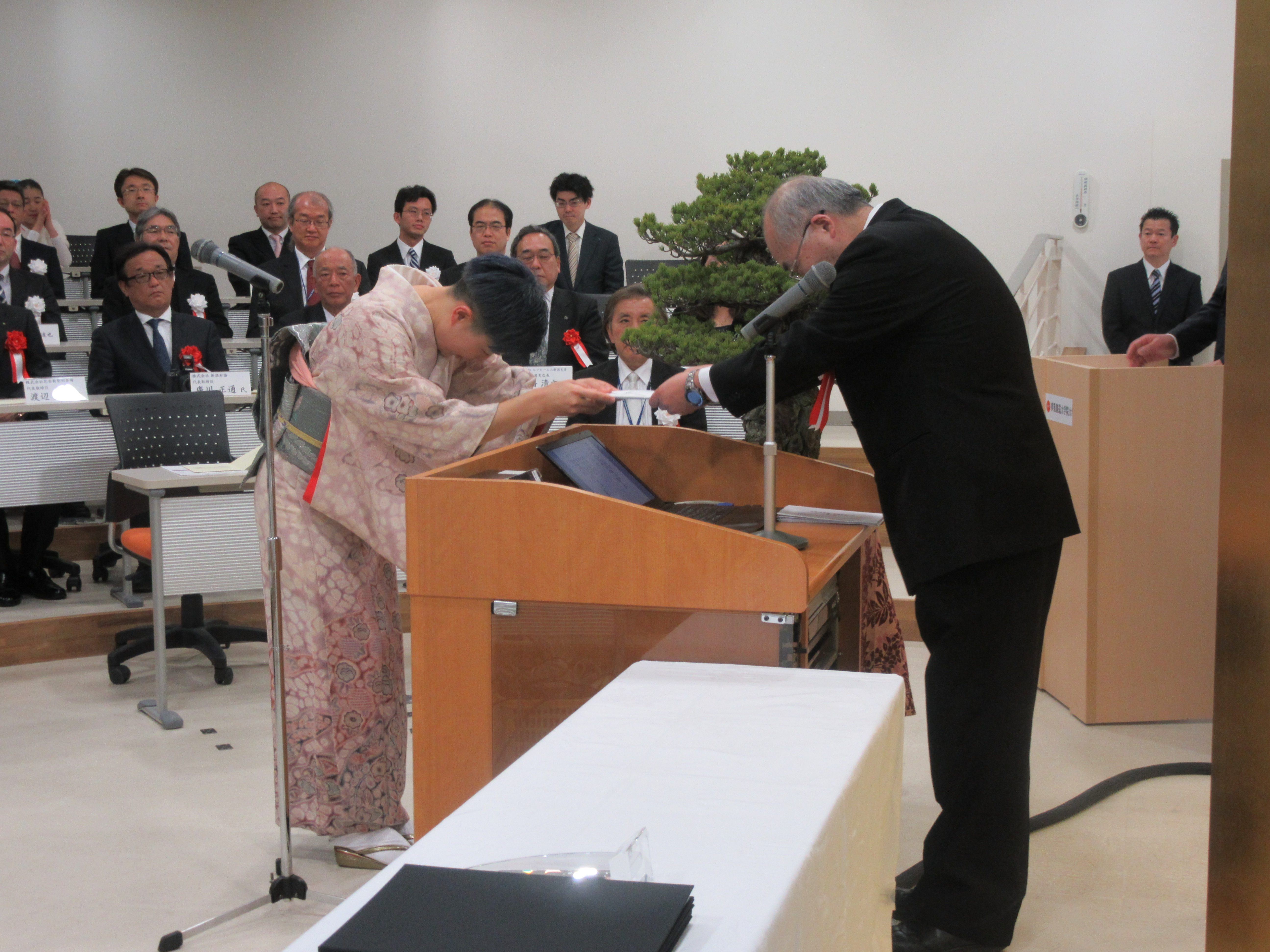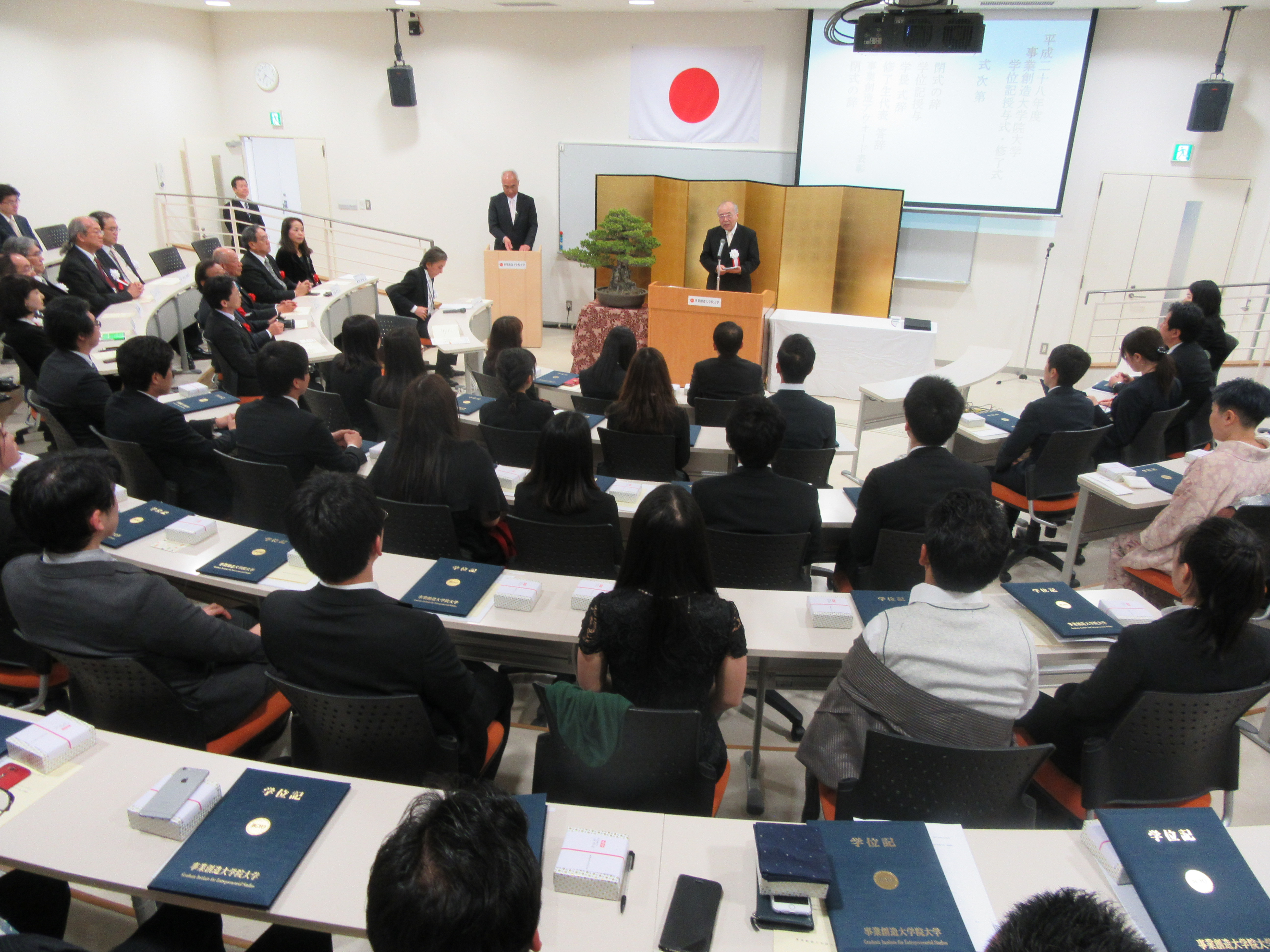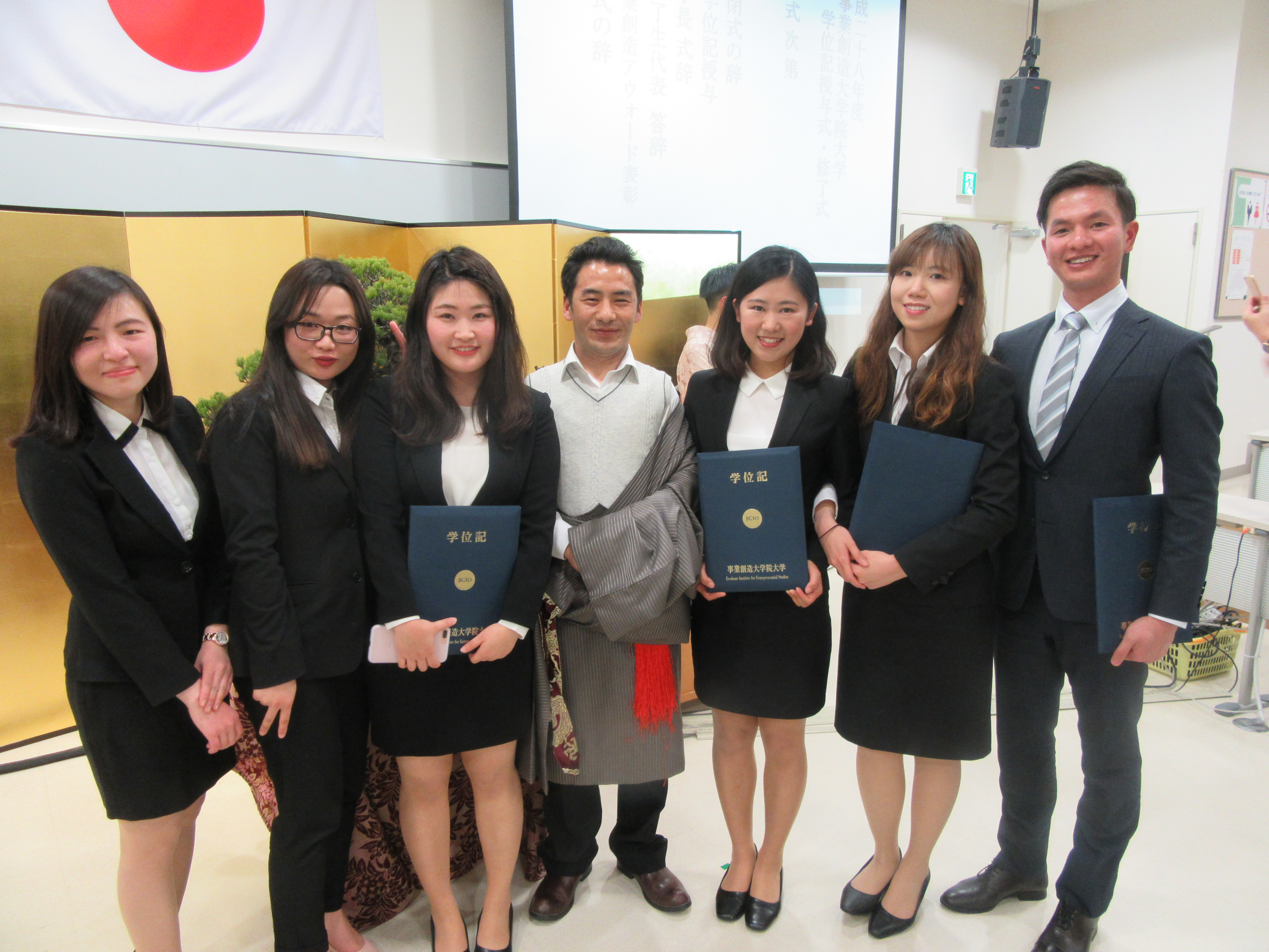 学位記授与式終了後には、本学の修了要件でもある学位論文最終審査において、優秀な成績を修めた者を表彰する「事業創造アウォード」の受賞者が発表されました。