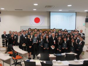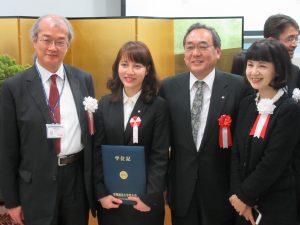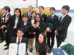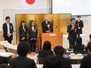 今回は優秀賞に4名が選出され、ベトナム人留学生のPham Hoang Anhさん(貿易大学出身)とDuong Thi Ngoc Thuy さん(ハノイ大学出身)、日本人学生として おぎ野宏さん(医療法人愛広会勤務)と小泉恵之さん(専門学校新潟国際自動車大学校勤務)、また、最優秀賞には岡村誠さん(新潟県勤務)が選出され、仙石学長から表彰状とトロフィーが手渡されました。受賞された皆様、誠におめでとうございます。