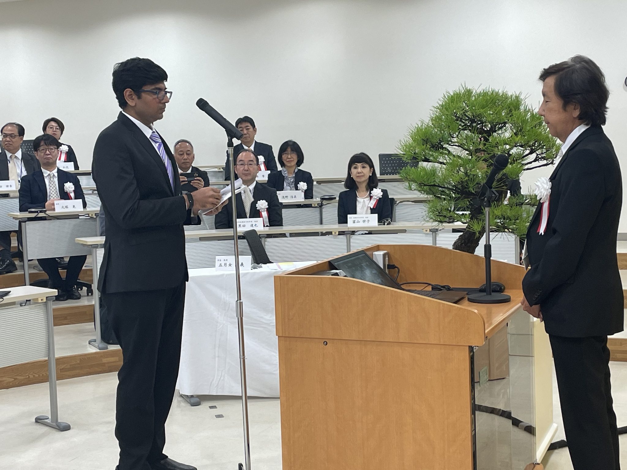 修了生代表のシロトリヤ トゥシャール サンジャエさんが答辞を述べられました。