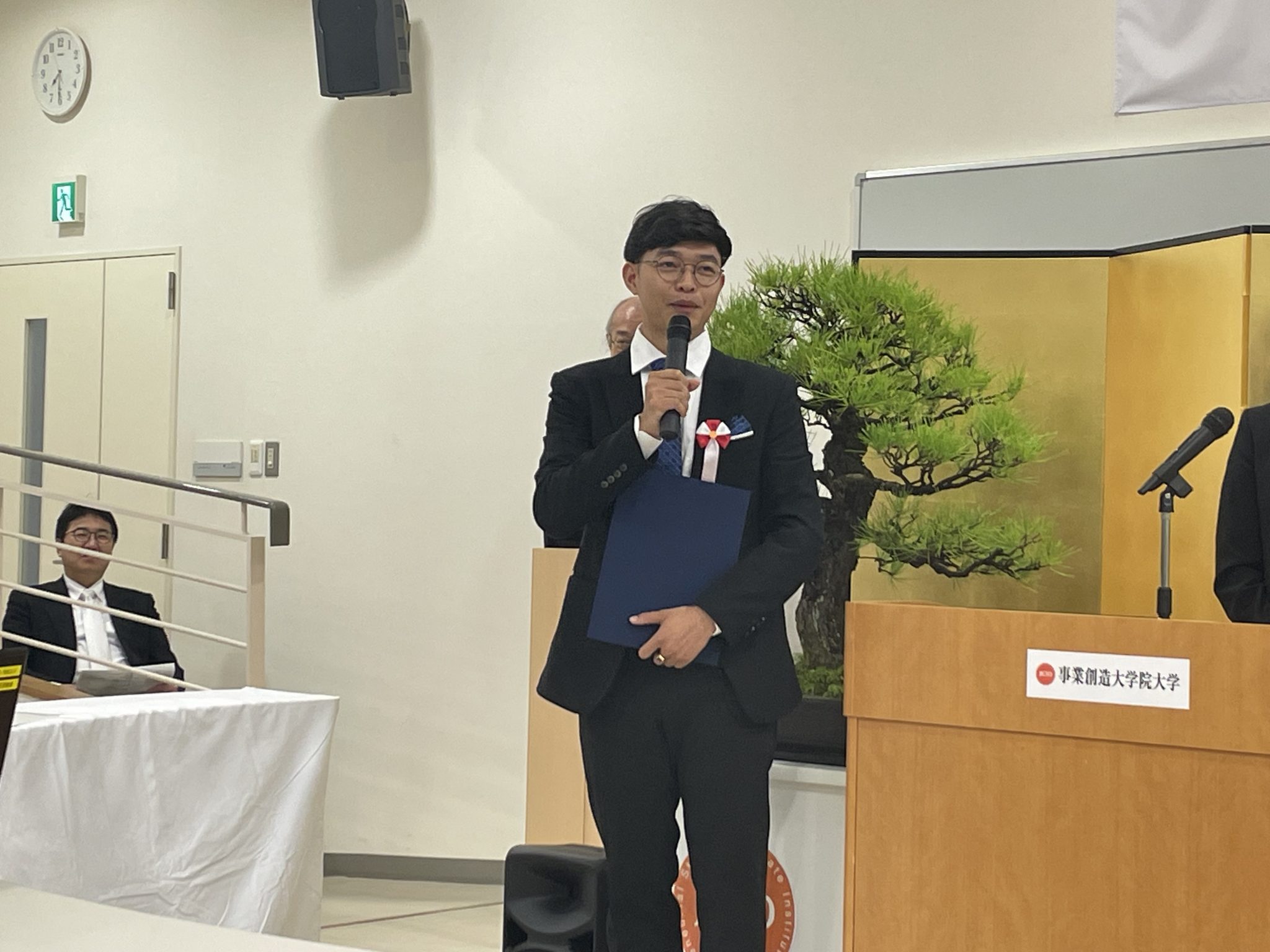 式典終了後には、本学の修了要件でもある専門職成果報告書(学位論文)最終審査において、優秀な成績を修めた者を表彰する「事業創造アウォード」の受賞に移りました。