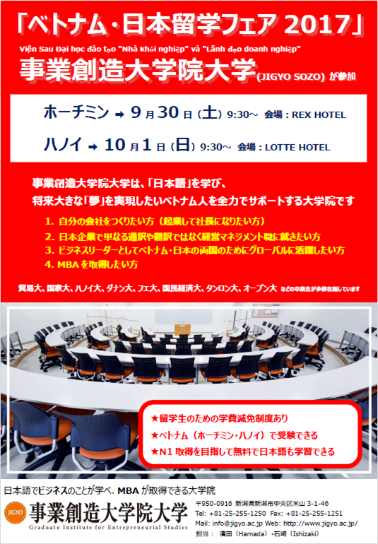 9/30(土)・10/1(日)9:30~ 日本留学フェア(ベトナム)ホーチミン・ハノイに事業創造大学院大学が参加