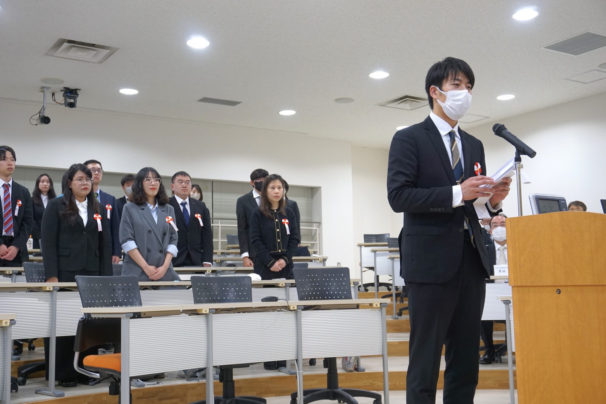 その後、在学生代表者の小比田さんより新入生へ「歓迎の言葉」が贈られ、最後に新入生代表の塩崎さんが「決意表明」を宣言されました。