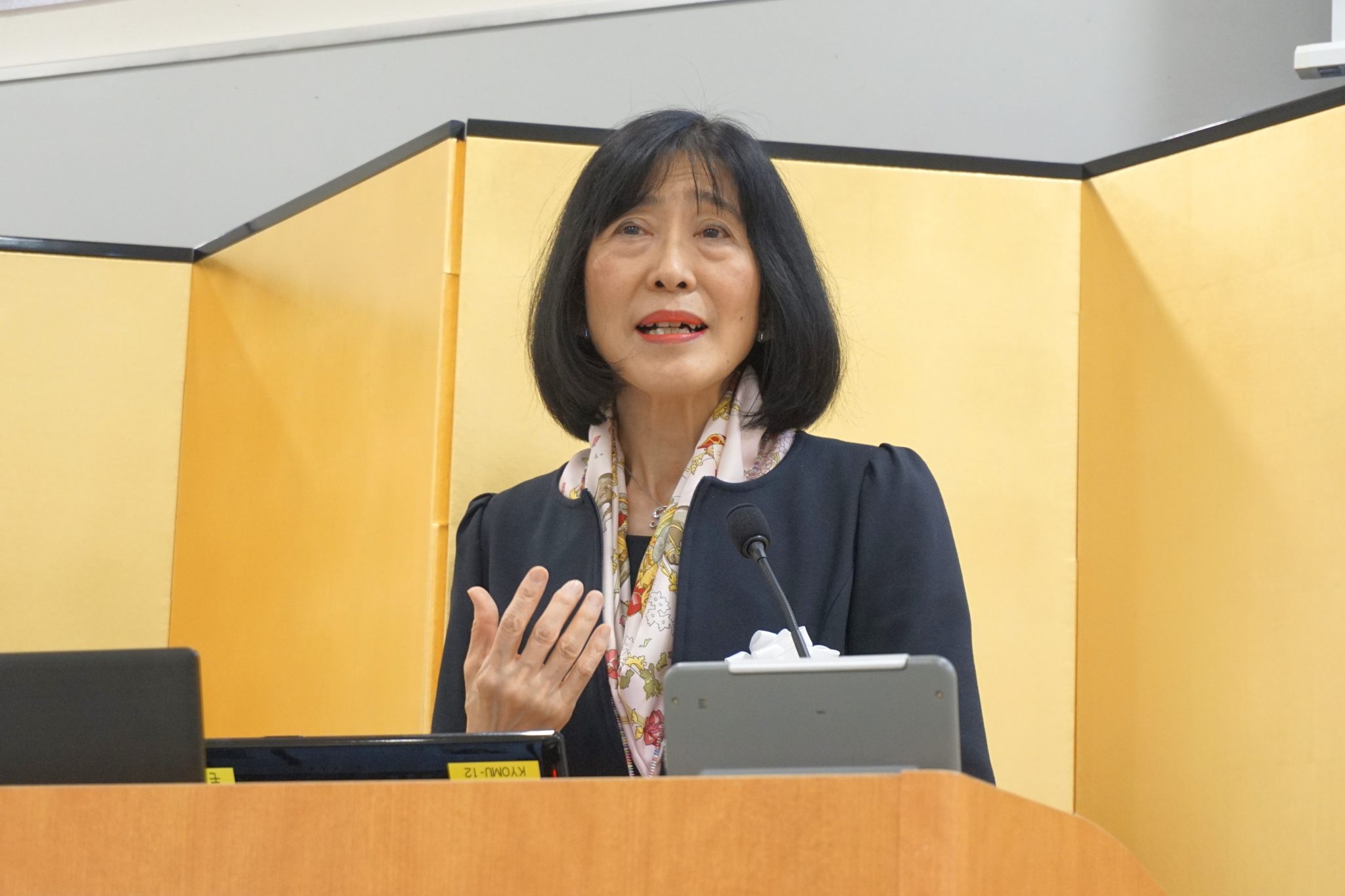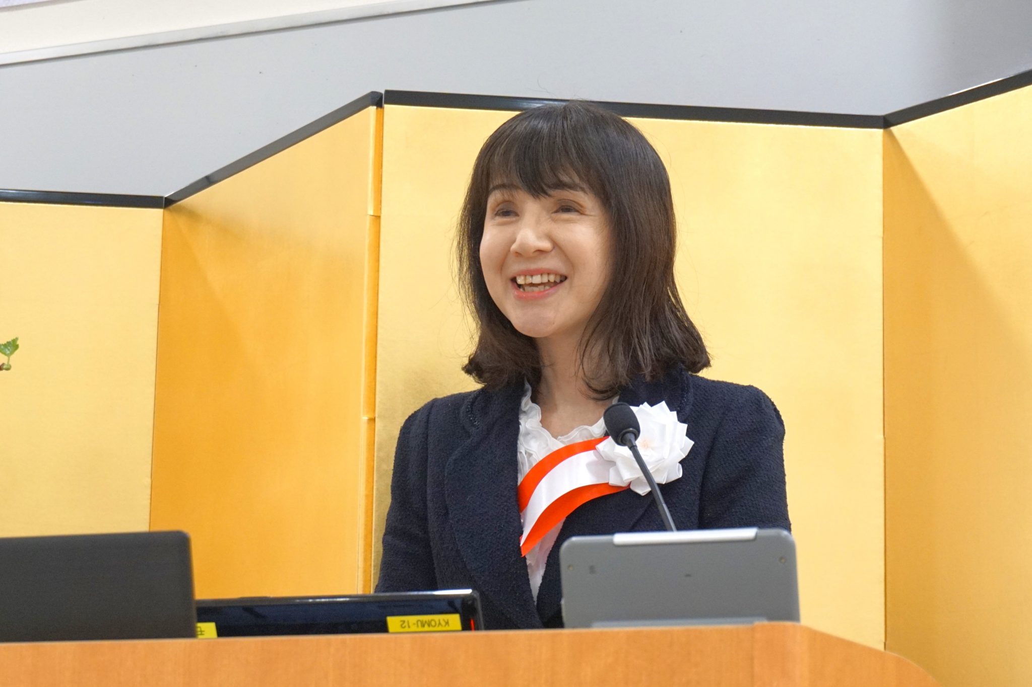 唐木副学長・研究科長による「入学許可の宣誓」後、五月女学長から「お祝いの式辞」が新入生に贈られました。