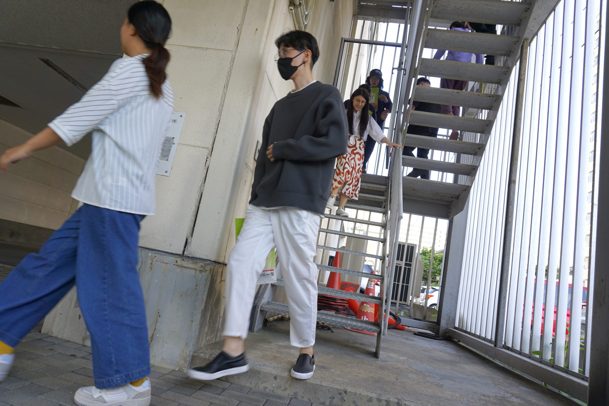 セミナー終了後は授業中に地震が発生したケースを想定し、「避難訓練」を実施。実際に全員で非常口を使って学内より退避し、避難場所である米山公園の現地確認も行いました。