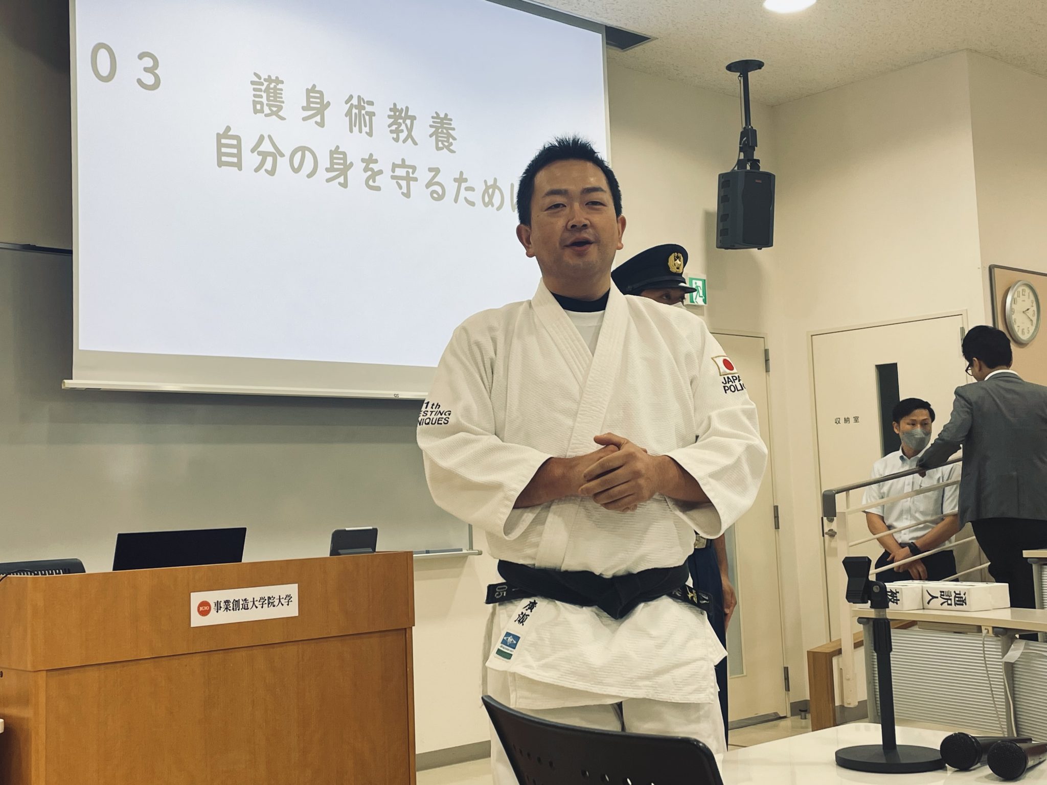 新潟県内の在留外国人が過去最多となる中、事業創造大学院大学にて「国際教養セミナー」が開かれ、新潟県警の方から留学生(9カ国48名)が110番通報の方法や護身術などを学びました。