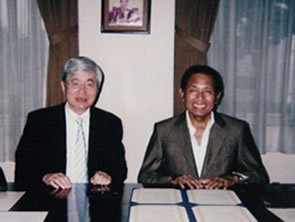 2012.02.26 国際交流 インドネシア共和国 ダルマプルサダ大学と交流協定締結 インドネシア共和国のダルマプルサダ大学と事業創造大学院大学が交流協定を締結。 教員および研究者の交流、学生の交流、学生の受け入れ、共同研究と講義、講演、シンポジウムの実施、研究情報と資料の交換などを進めていくこととした。 ダルマプルサダ大学Oloan P.Siahaan学長(右)と湯川学長(左)
