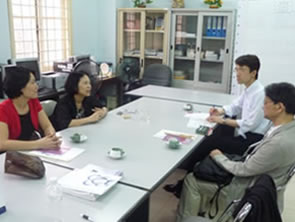 2013.04.25 国際交流 ベトナム ハノイ大学にて特別授業 ハノイ大学にて山田准教授による特別授業を開催。 ハノイ大学日本語学部学部長TOAN先生および副学部長HUONG先生と、本学鈴木准教授および山田准教授の教員間で情報交換を行った。