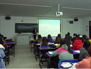 2013.11.07 国際交流 中国 延辺大学を交流訪問 中国・延辺大学外国語学院を訪問し鄭院長と宇田研究科長による会談が執り行われました。 中央が鄭院長、右側が金書記、左が宇田研究科長。 延辺大学外国語学院にて事業創造大学院大学の概要と授業内容および留学についての説明会を開催。 2年生~4年生約100名が参加しました。