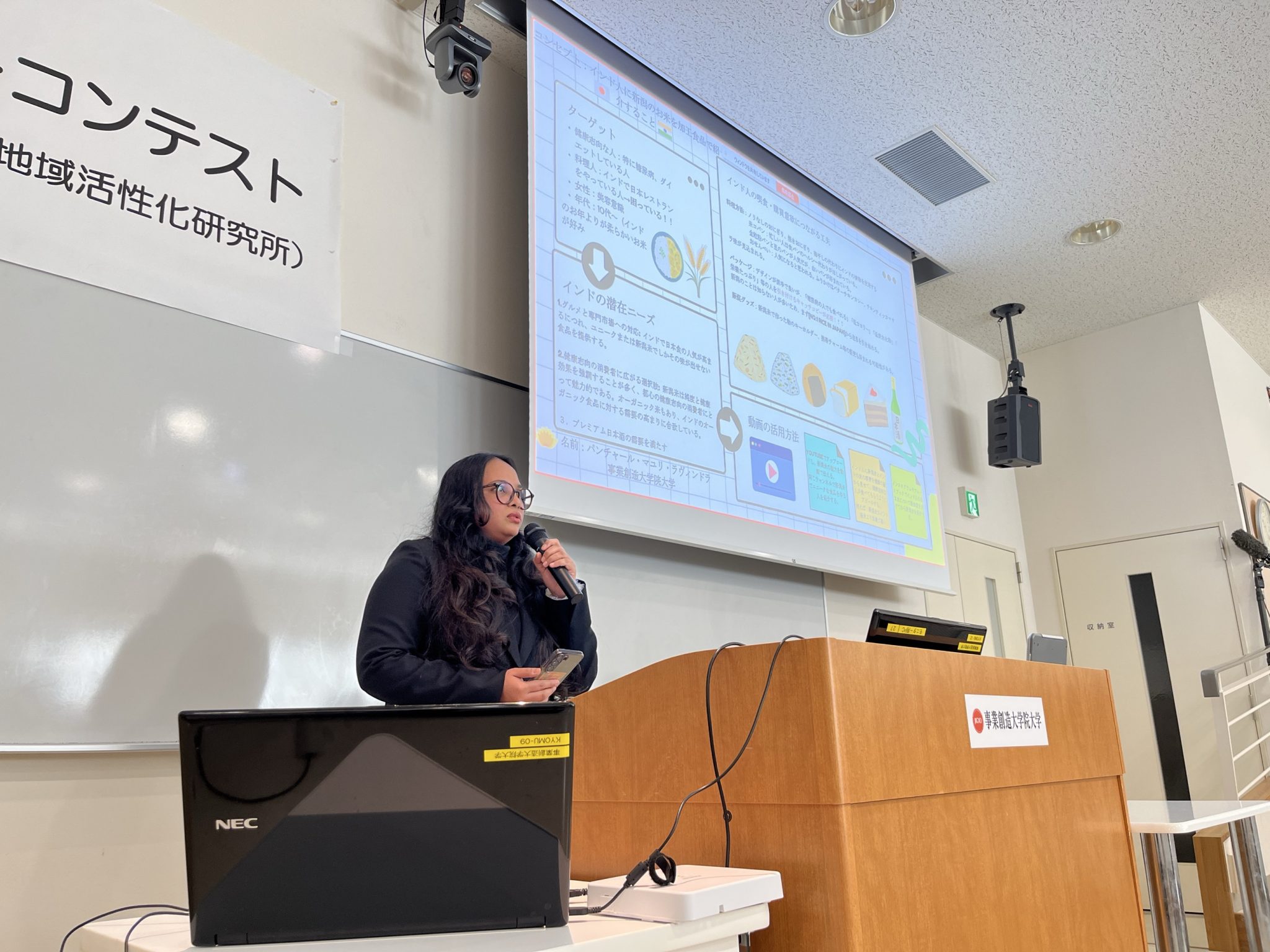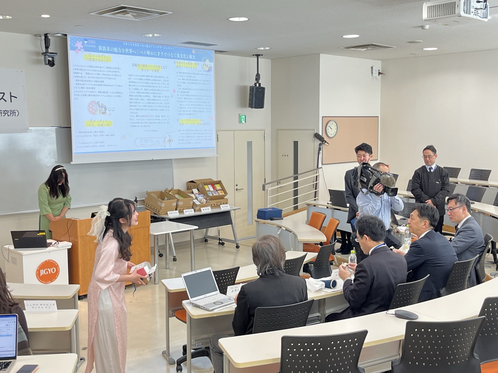 今回は本学へ留学している在学生6チームが『「母国に広げる新潟米の魅力」戦略』というテーマのもと、プレゼンテーションを行います。