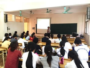 2015.11.17 国際交流 ハノイ国家大学外国語大学を訪問 ハノイ国家大学外国語大学を訪問。東洋言語文化学部Dao Thi Nga My学部長(写真中央)と今後の大学間交流について意見交換が行われた。本学五月女教授と鈴木准教授よりハノイ国家大学外国語大学創立60周年を祝して記念品を贈呈した。 また、ハノイ国家大学外国語大学にて本学入学試験、説明会、五月女教授によるMBA特別授業が行われた。