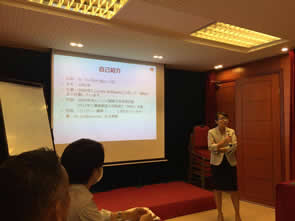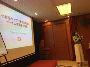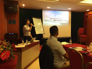 また、今回のベトナム訪問のメインであるハノイ・ビジネスマッチングでは、本学修了生で起業家や会社役員として活躍している、LUVINA SOFTWARE JOINT STOCK COMPANY執行役員 兼 開発部副部長Ngocさん(貿易大学出身)と有限会社 PLAN DO SEE VIET NAM代表取締役社長Xuanさん(貿易大学出身)から講演をしていただきました。(左:Ngocさんによる講演、右:Xuanさんによる講演)