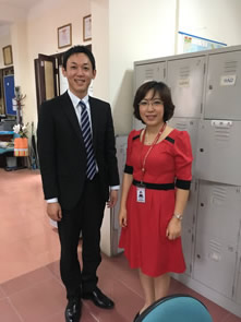 貿易大学を訪問し、日本語学部Thuy学部長と情報交換を行いました。その後、説明会を開催しました。(左:左がThuy学部長、右:説明会の様子)