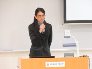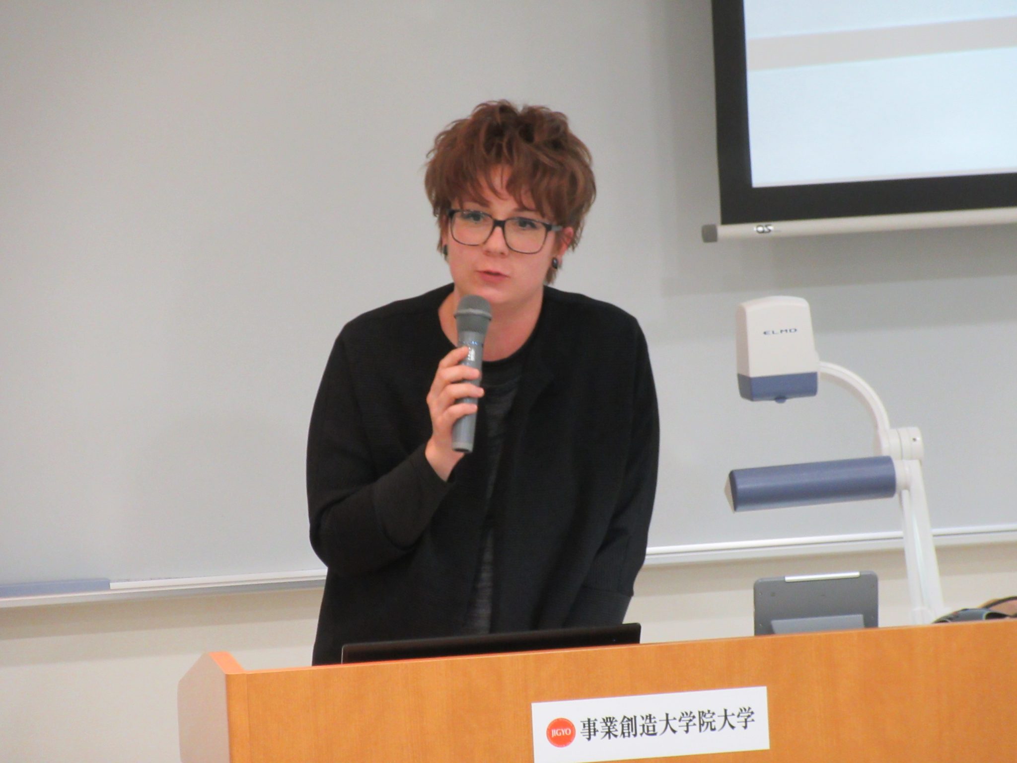 研究成果を形にし、最終的に「事業計画書(起業・社内起業・新規事業などを行うための計画書)」「プロジェクト報告書(国際的活動・社会活動や組織変革など行動実績を重視した報告書)」、「研究論文(学術修士論文)」のいずれかを執筆した学生が、2年間の課程の集大成として発表を行い、審査を受けました。