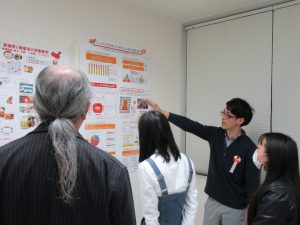 1年次後半からは希望するゼミへ本配属され、研究計画(プレゼミナール成果)を元に「演習Ⅰ」として研究活動を本格化していきます。その成果として、1枚のポスターに研究内容をまとめてプレゼンテーションを行うポスターセッションが行われました。