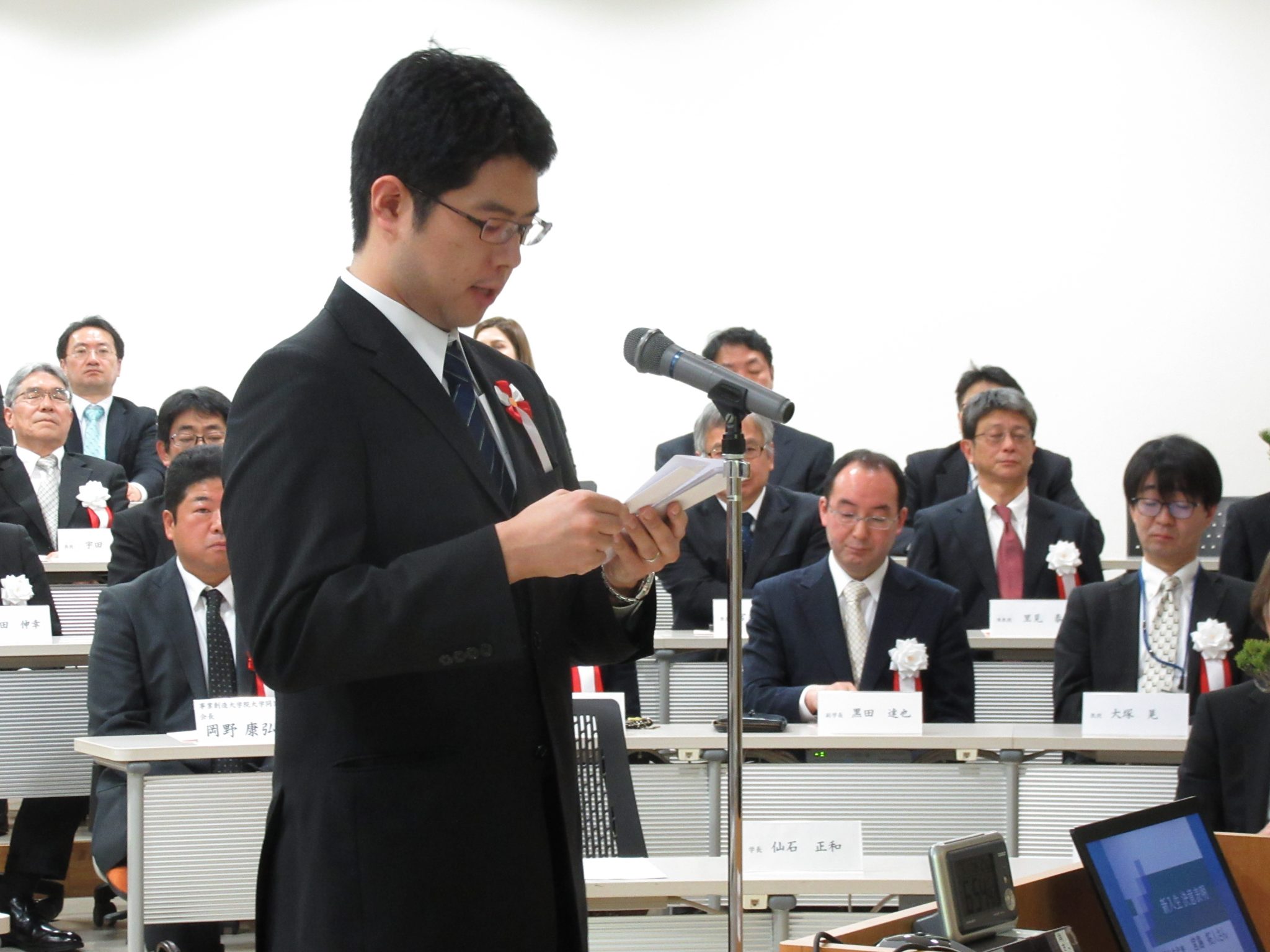 最後に、新入生を代表して宮島拓人さん(三行合成樹脂株式会社)が「新入生同士互いに切磋琢磨し、多くのコミュニケーションを通じ成長し、新たな時代を切り開くリーダーとなることを誓います」と力強い言葉で、決意表明をされました。
