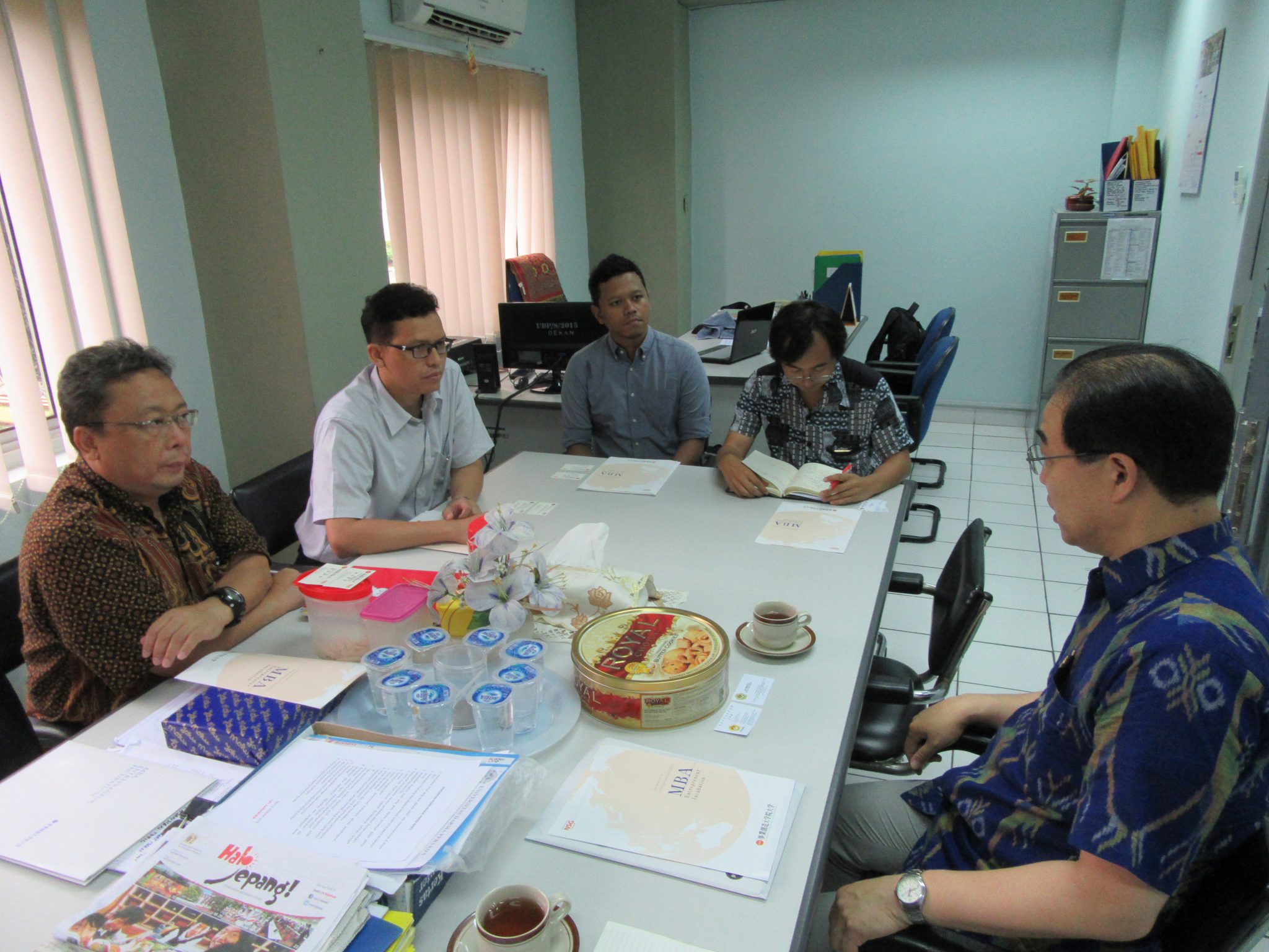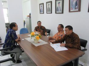 2018年6月6日(火)、インドネシア ダルマプルサダ大学を訪問し、文学部日本語学科でEko Cahyono学部長、Ari Artadi学科長、Hari講師、職員の高木氏と情報交換を行いました。