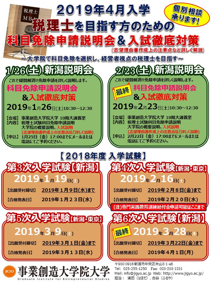 【1/26(土) 税理士試験科目免除申請説明会&入試徹底対策】