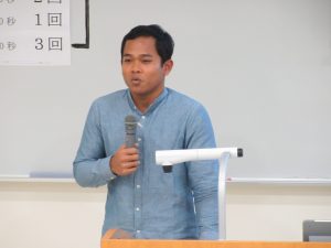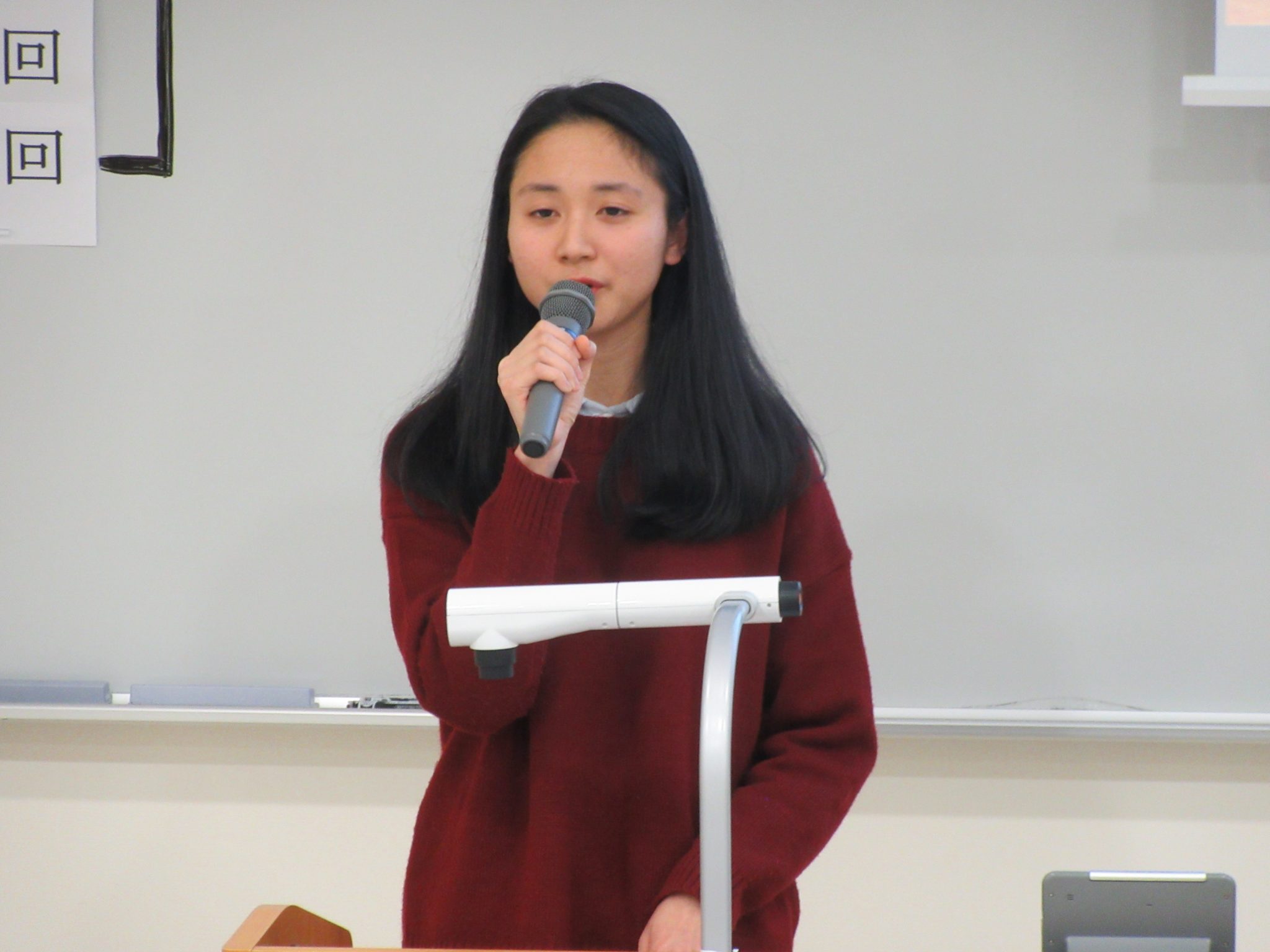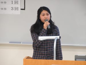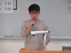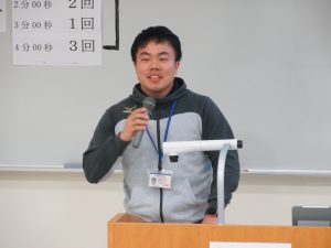 「プレゼミナール発表会」では、学生による2分間の発表の後、教員による質疑応答2分間が行われました。
