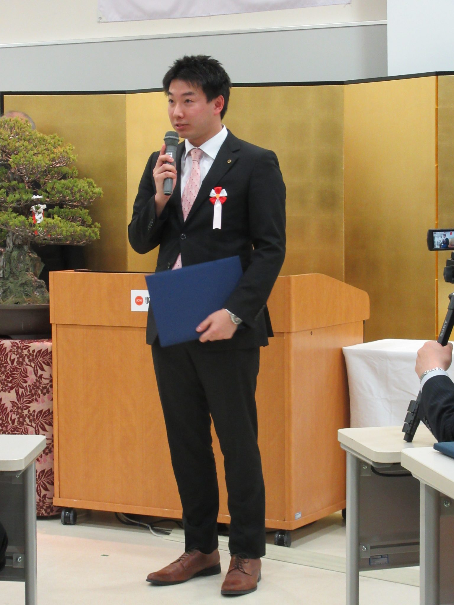 続いて、修了生を代表し、新潟県庁の青木成史さんが修了生代表答辞として「私たち修了生は各々の人生にだけではなく、より広く地域や社会へとどのように還元していくべきなのか、それらについて常に自分事として捉え、試行錯誤し、少しずつでも形にしていくことが私たち修了生に与えられた大きな使命であることを強く認識し精進していきたい」と述べました。