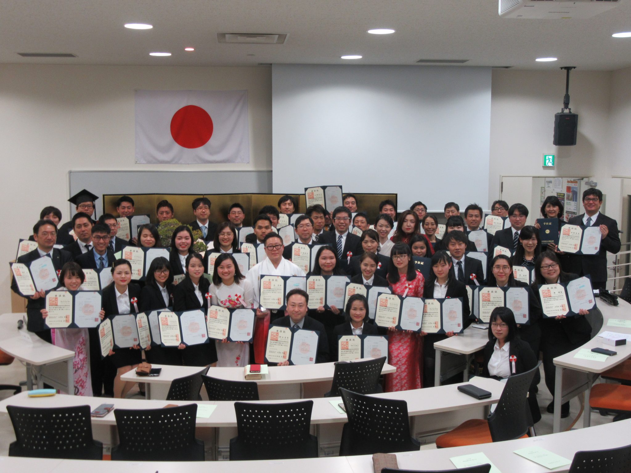 2019年3月20日(水)、事業創造大学院大学10階大講義室において、学位記授与式・修了式が挙行されました。2017年4月に入学し2019年3月をもって修了を迎えられた日本人をはじめ、ベトナム、インドネシア、モンゴル、中国、台湾、ネパールからの留学生を含む56名の方々に、MBA経営管理修士(専門職)が授与されました。