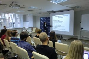 反グローバリゼーション現象と日本式グローバルマーケティング戦略について欧米企業と比較して相違点と特長、その優位点と克服すべき課題、そして、日本企業のおもてなしについて講義を行いました。