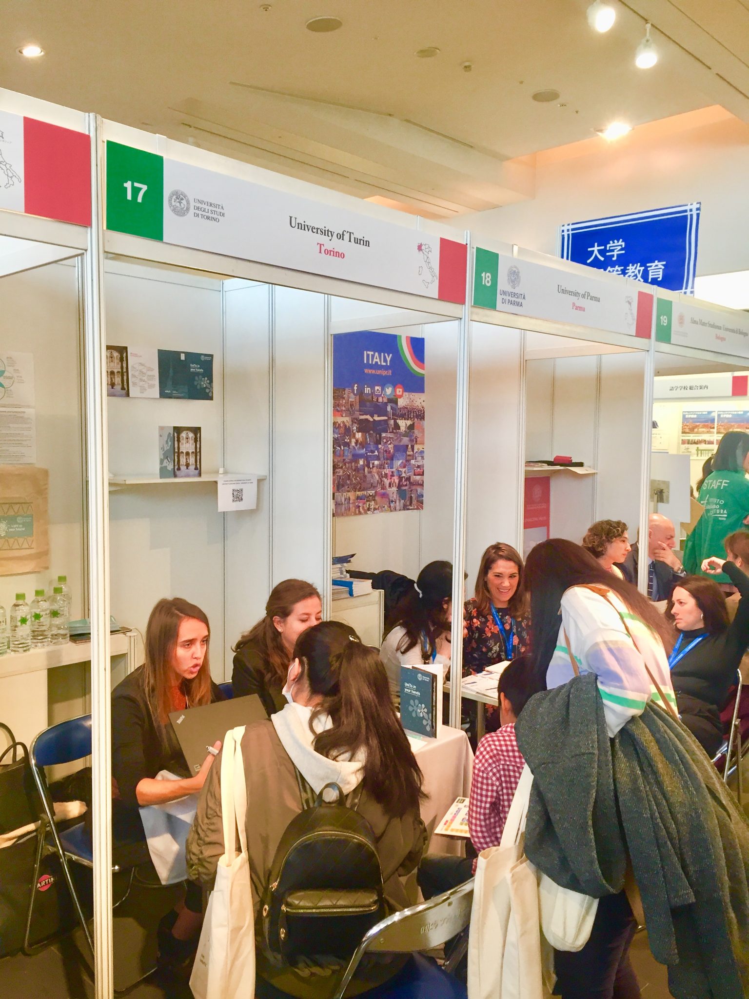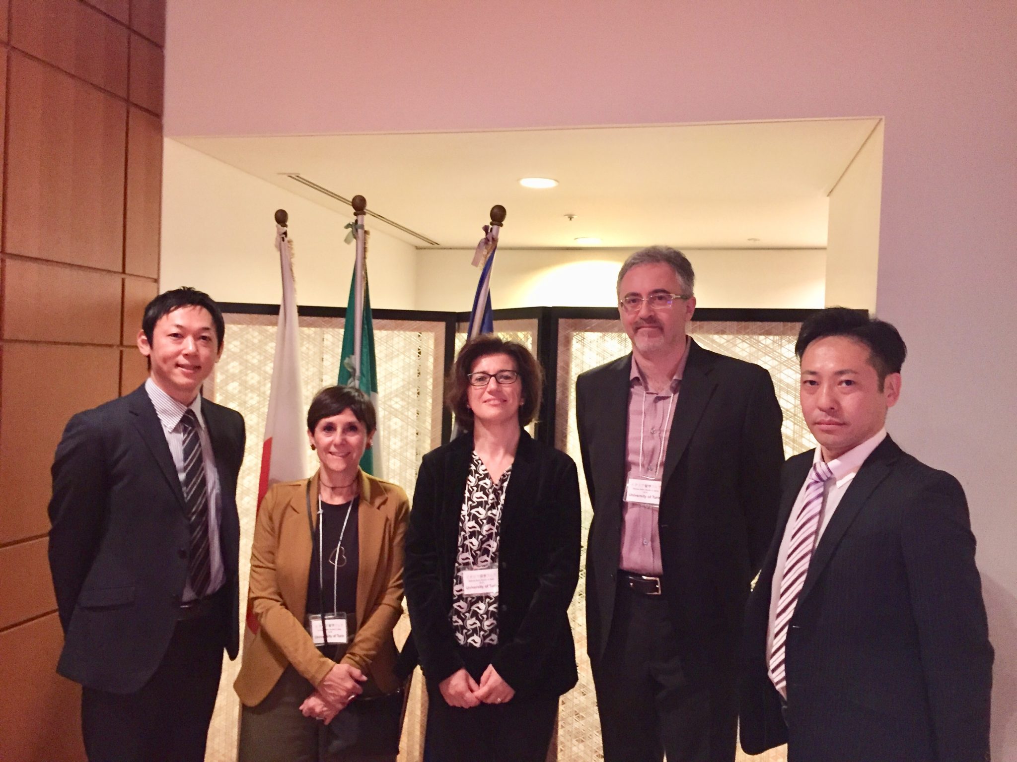 2019.11.11 国際交流 イタリア交流協定校・トリノ大学と学術交流に関する意見交換を実施 2019年11月9日(土)・10日(日)、イタリア文化会館で開かれた「イタリア留学フェア」にて、本学交流協定校であるイタリア・トリノ大学のGianluca Coci教授をはじめ、教学担当副学長Barbara Bruschi教授、国際担当副学長Marcella Costa教授と学術交流に関する意見交換を実施しました。