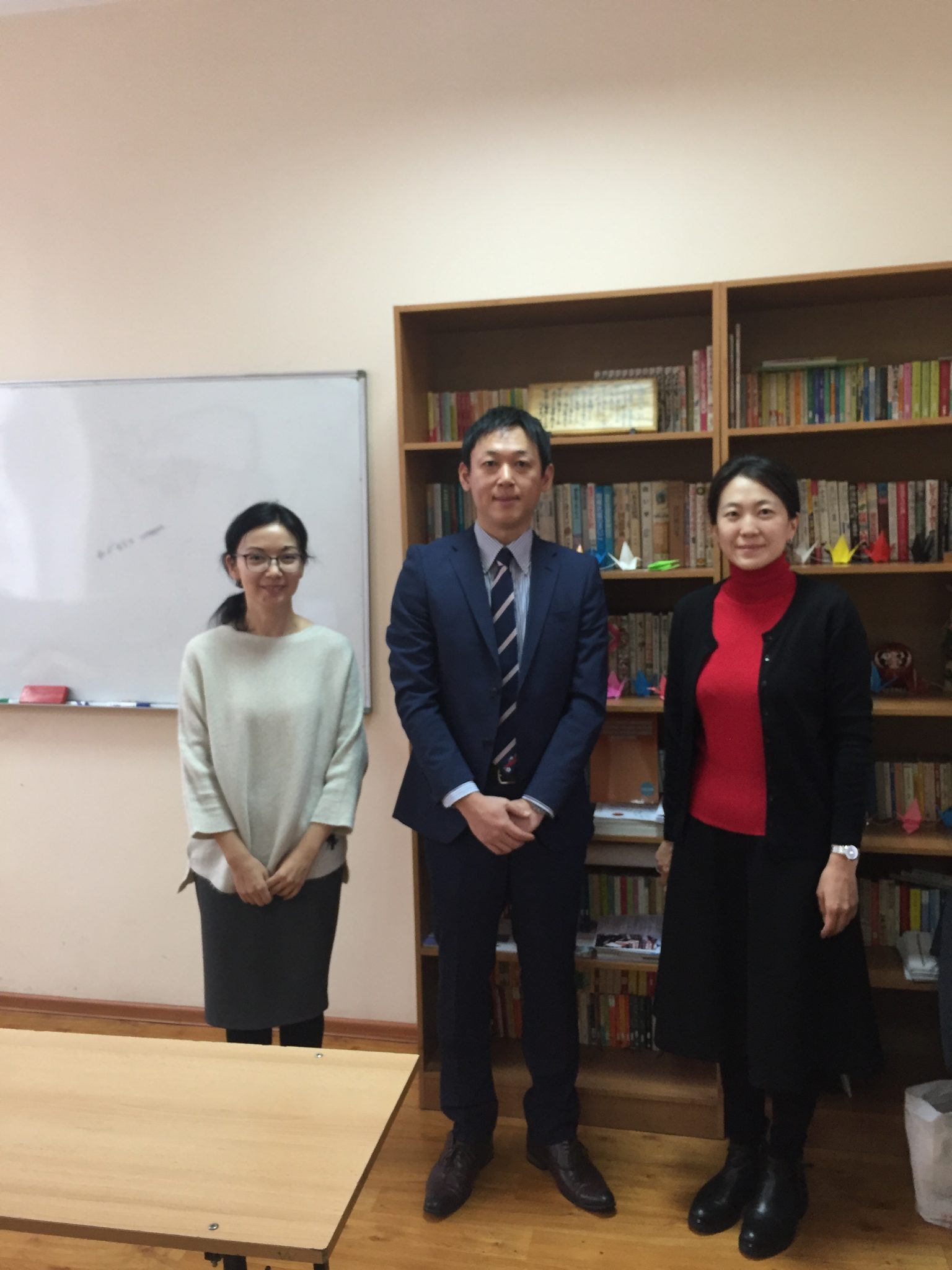 2019年11月25日(月)、カザフスタン共和国のアルマティでZhadra先生のご紹介により、アブライ・ハン名称カザフ国際関係外国語大学のMariya Yugay先生およびマラル先生と新規交流協定に関する意見交換を実施しました。