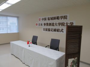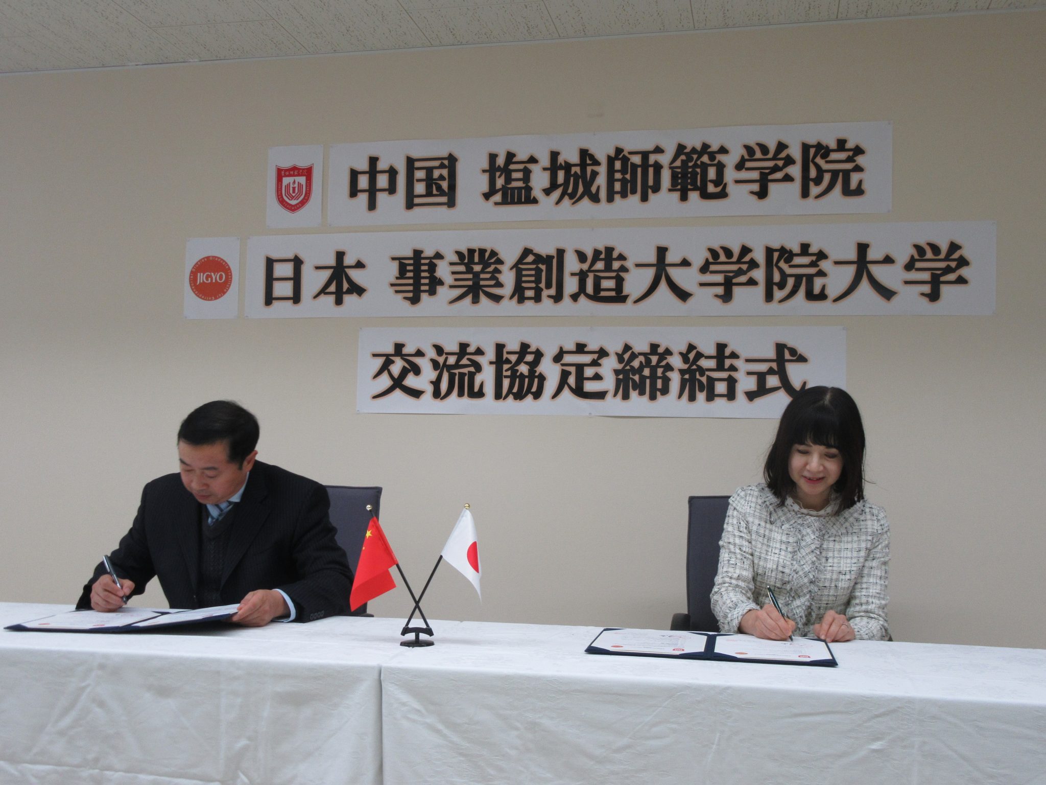 2019年12月24日(火)、事業創造大学院大学は、新たに中国・江蘇省塩城市にある塩城師範学院と交流協定を締結しました。