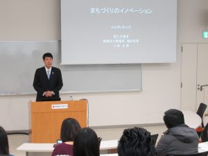 「まちづくりのイノベーション」 と題して開催された特別講義には、学内外から多くの受講者が参加し、真剣に耳を傾けていました。