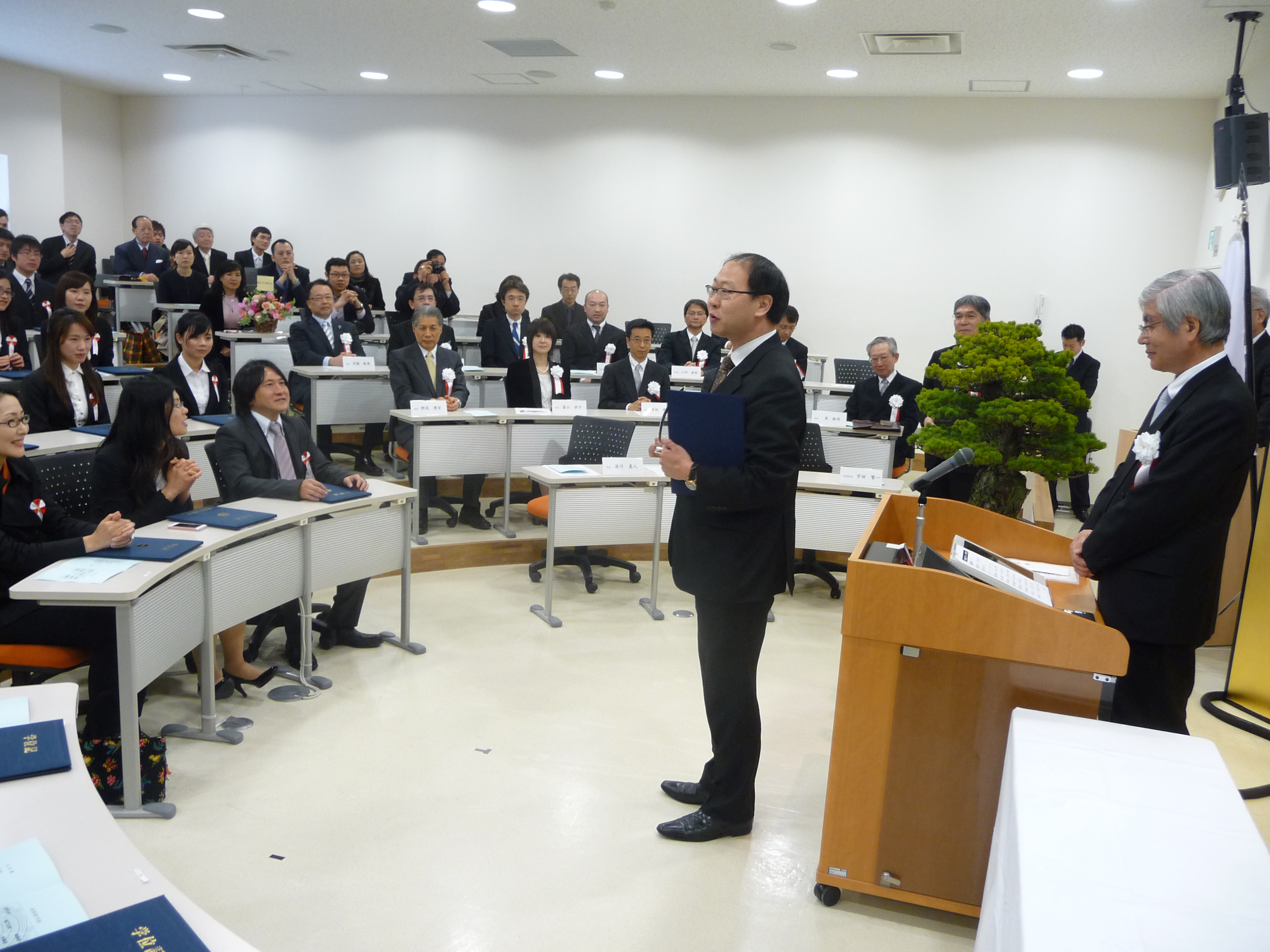 式典には、教職員のほか、留学生のご家族や在学生の方々も多数参列されました。