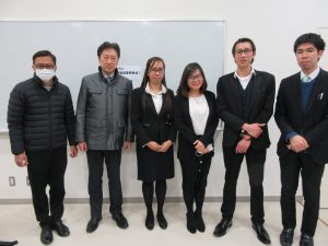 三番目の発表者2年生ブン・ワンナーさん(カンボジア)は、今春3月修了後にカンボジアへ帰国し税理士会計事務所を開業する計画です。ブンさんは既に母国の税理士資格を持ち、日本の税務業界から学んだ税務サービスで母国の経済発展に尽くす意気込みです。ゲストからカンボジアの税務事情に質疑が集まり、ブンさんの事業創造の意義と将来性を支持する声が聞かれました。