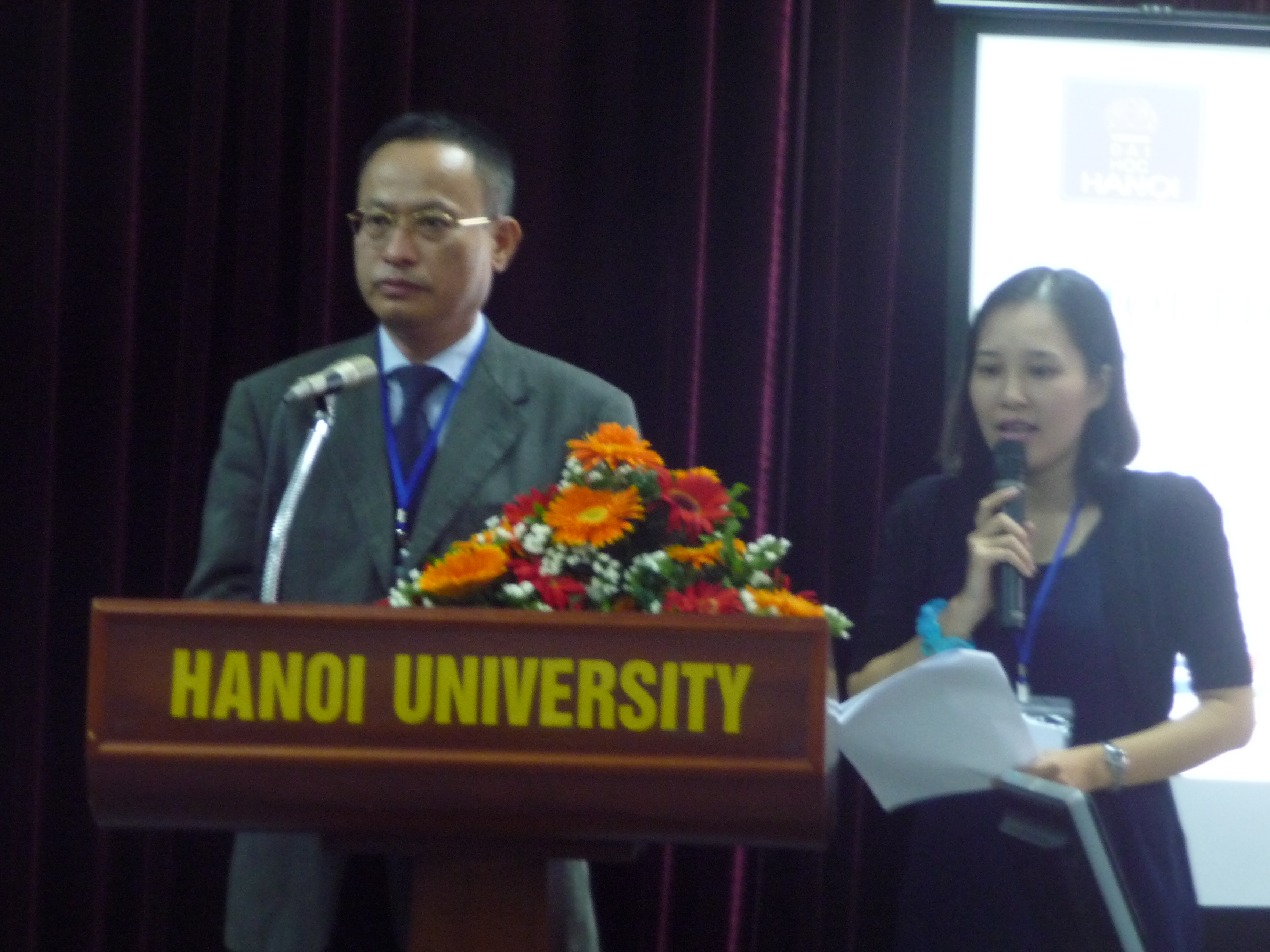 まずはじめに、ハノイ大学のNGUYEN DINH LUAN(グェン・ディン・ルアン)学長より、出席者各位に向けて歓迎の意が述べられ、