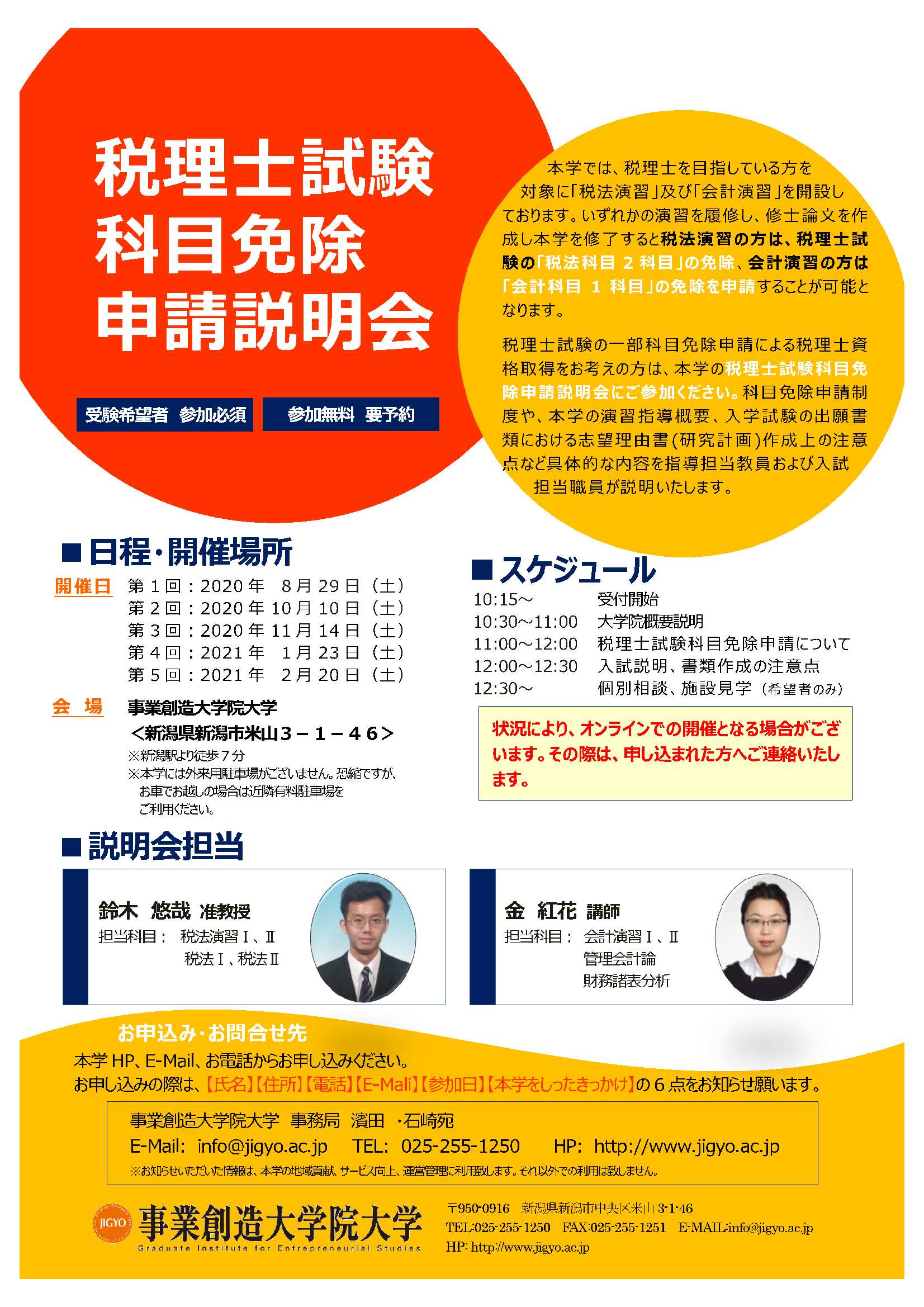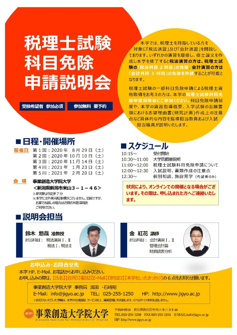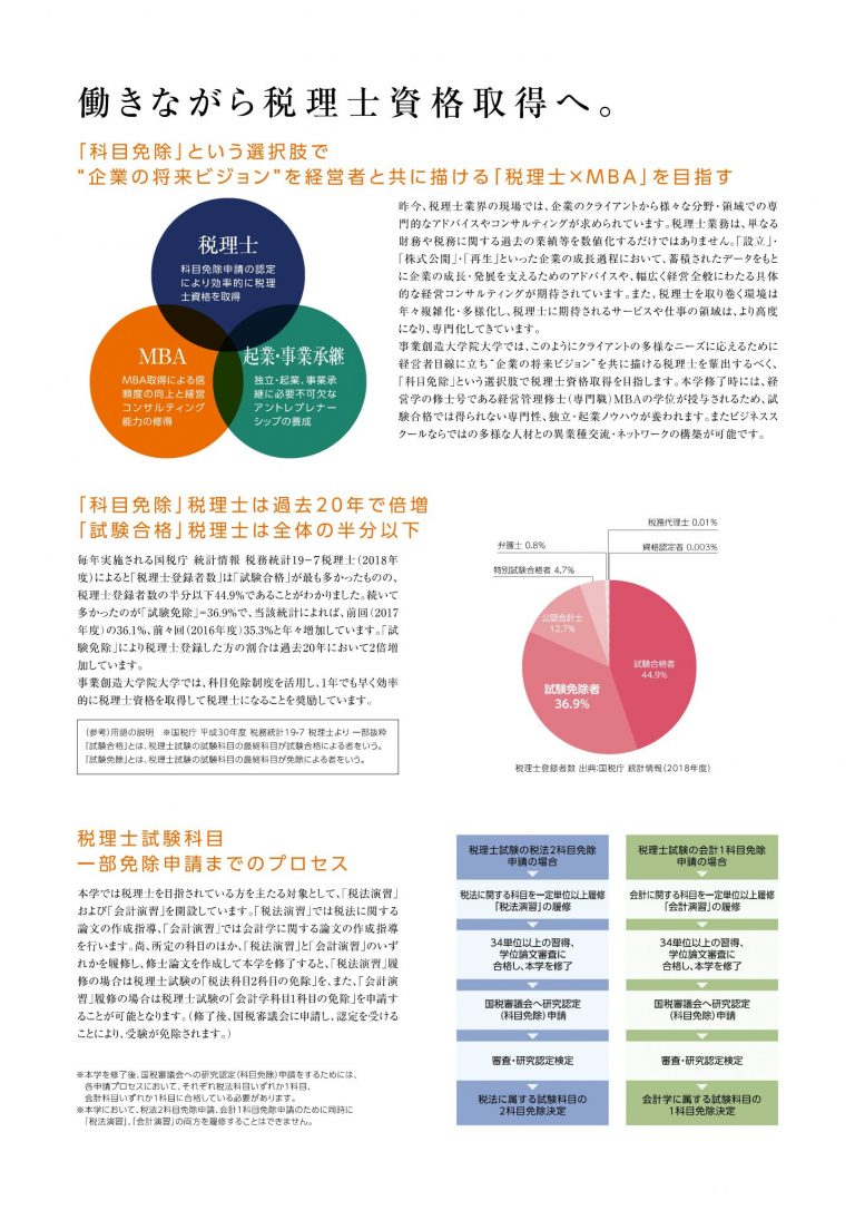 【内容】・税理士試験科目免除申請の詳細説明、大学院の概要説明