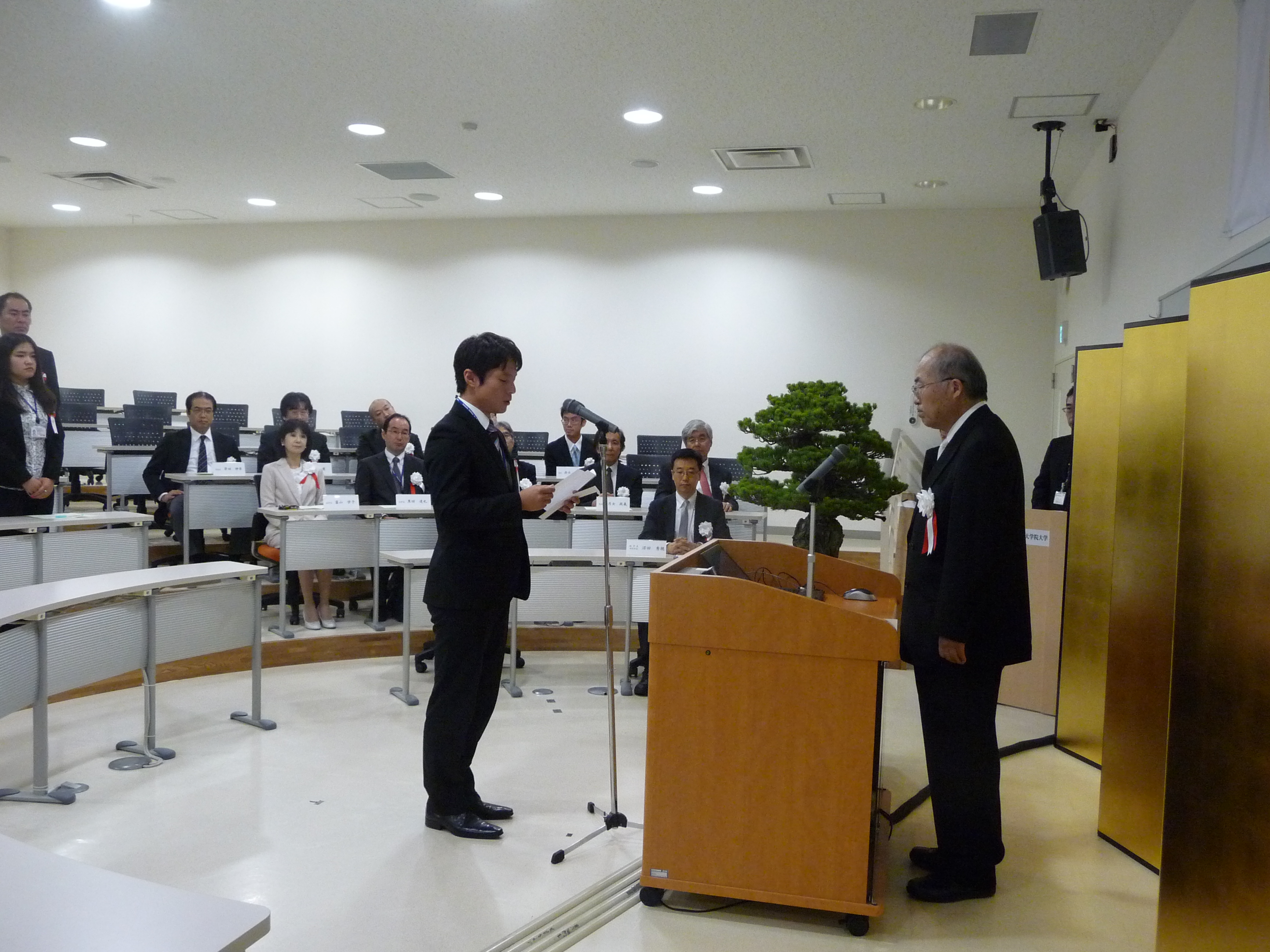 式典では、仙石学長からのお祝いの祝辞の後に、新入生を代表して農業関係の人材育成に従事している多賀祥治さんが式辞を述べられました。