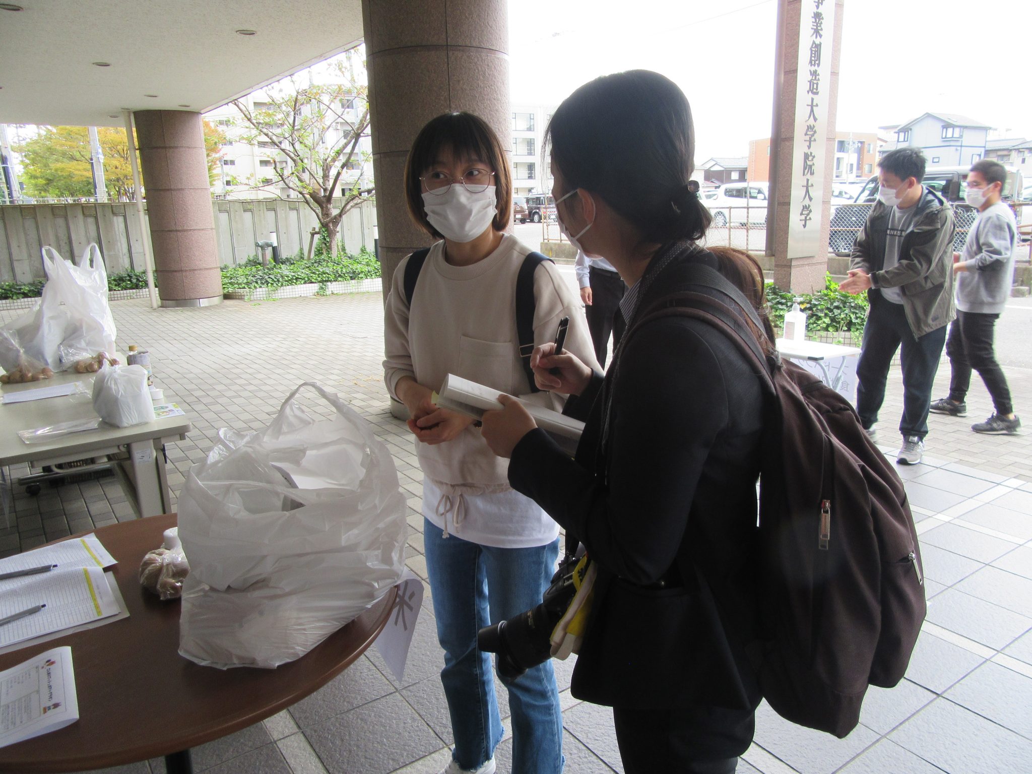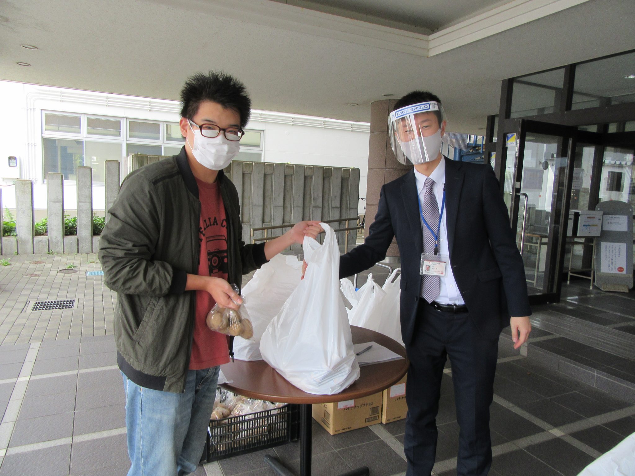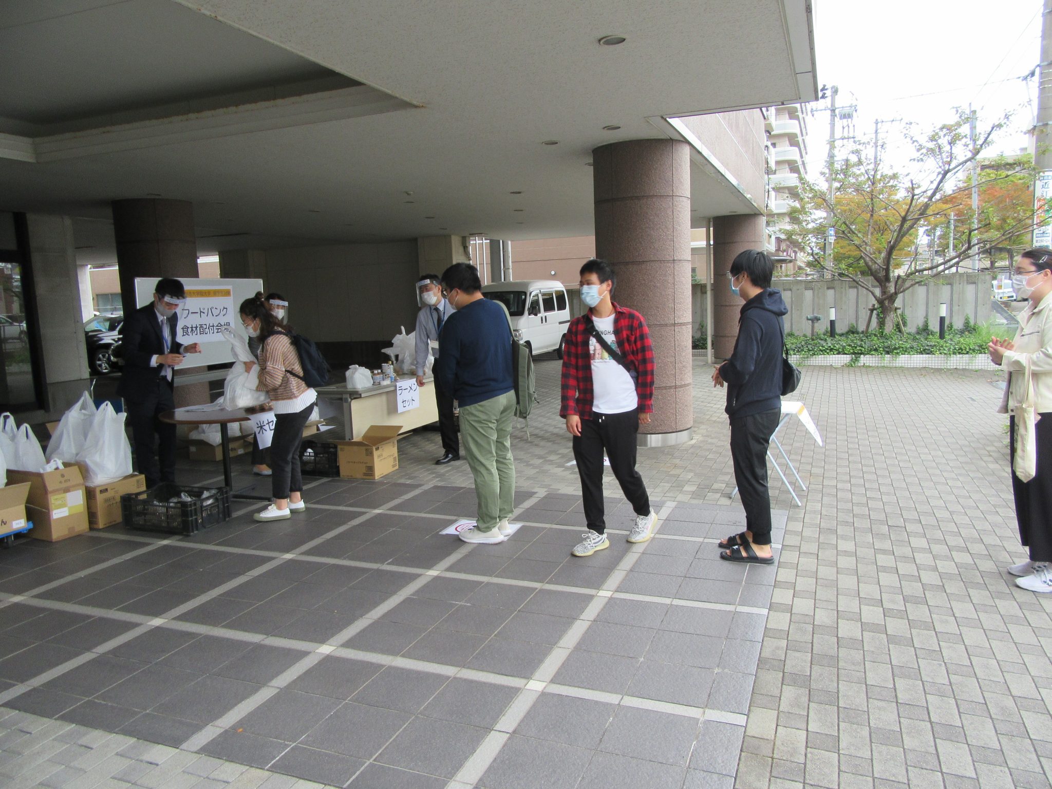 2020年10月22日(木)、事業創造大学院大学1階エントランス広場において、コロナ禍の影響で私生活上大きな影響を受けている本学外国人留学生に対して「フードバンクにいがた」様のご厚意によりたくさんの食料支援をいただき、コロナウイルス感染症拡大防止対策を徹底しながら配布が行われました。