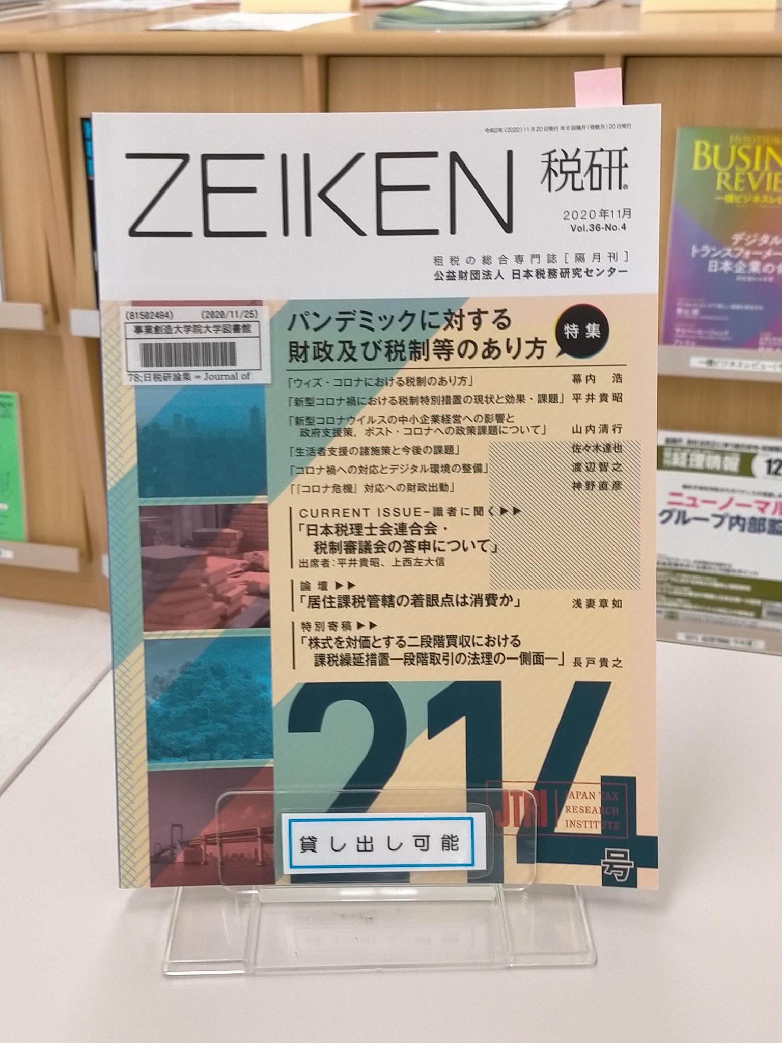 日本税務研究センターが発刊する租税等の専門誌「税硏」214号「SmallArticle」欄に本学で税法科目(税法Ⅰ・Ⅱ)及び税法演習(税理士科目免除のための論文指導)を担当する鈴木悠哉准教授の寄稿文「グループ・アプローチからみたわが国法人税制」が掲載されました。