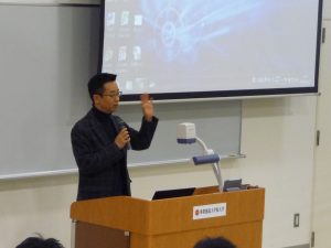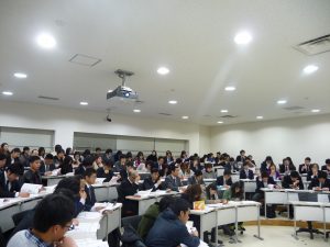 本学研究科長である沼田教授による「本学の理念」説明を皮切りに、これからスタートする講義科目の履修説明や、本学富山教授より、交流協定校であるカンボジアの王立プノンペン大学で行われた「学術交流に関する報告」が行われました。