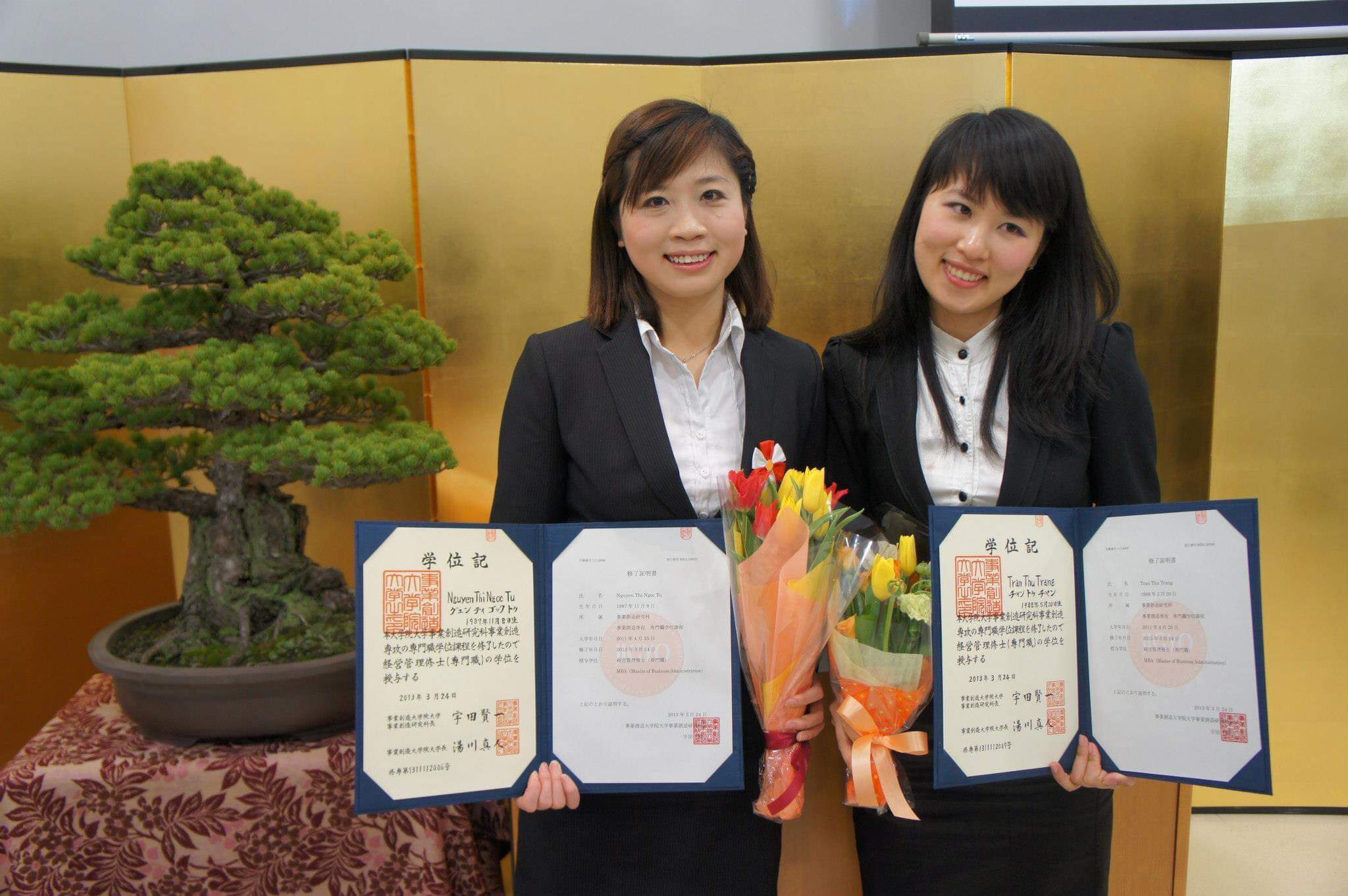 大学院修了後、3人とも東京の会社で就職しました。3人はそれぞれ活躍している分野が異なりますが、ベトナム関係の仕事という共通点があり、(①チャン・トゥ・チャンさん=人材紹介・採用支援、②グェン・ティ・ゴック・トゥさん=市場調査・海外進出コンサルタント、③グェン・ティ・マイ・フォンさん=貿易(購買))それぞれの強みを生かしたいと考えていました。