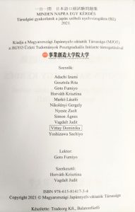 2021年7月7日(水)、ハンガリー日本語教師会(MJOT)より同教師会が出版する日本語教材「一日一問 日本語口頭試験問題集」が贈られました。