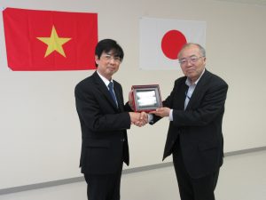 その後、仙石学長から本学の記念品や新潟のお土産をお渡し、Kham学長からも本学に対しフエの美しい伝統工芸品をいただきました。