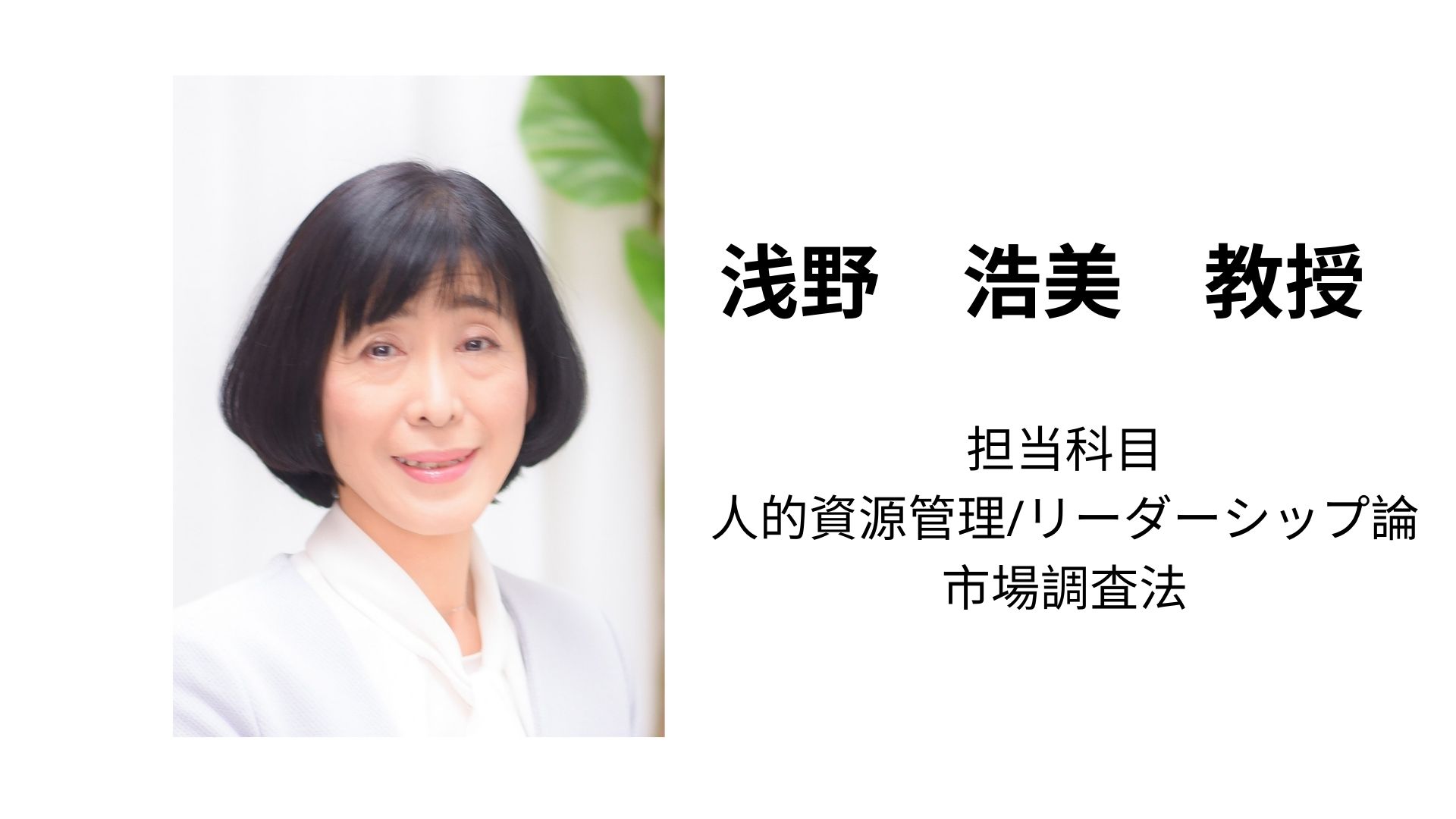 講師は、本学で「人的資源管理/リーダーシップ論」、「市場調査法」を担当している浅野浩美教授です。