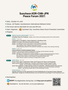 2021年10月8〜9日に韓国・順天(スンチョン)市で行われる「韓中日平和フォーラム2021」に本学地域・国際担当副学長である富山栄子教授が日本を代表して登壇いたします。