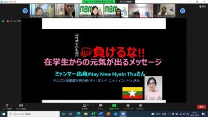 今回は、Zoomを介してミャンマー(ヤンゴン)と新潟(事業創造大学院大学)をリアルタイムで接続し、イベントが行われました。