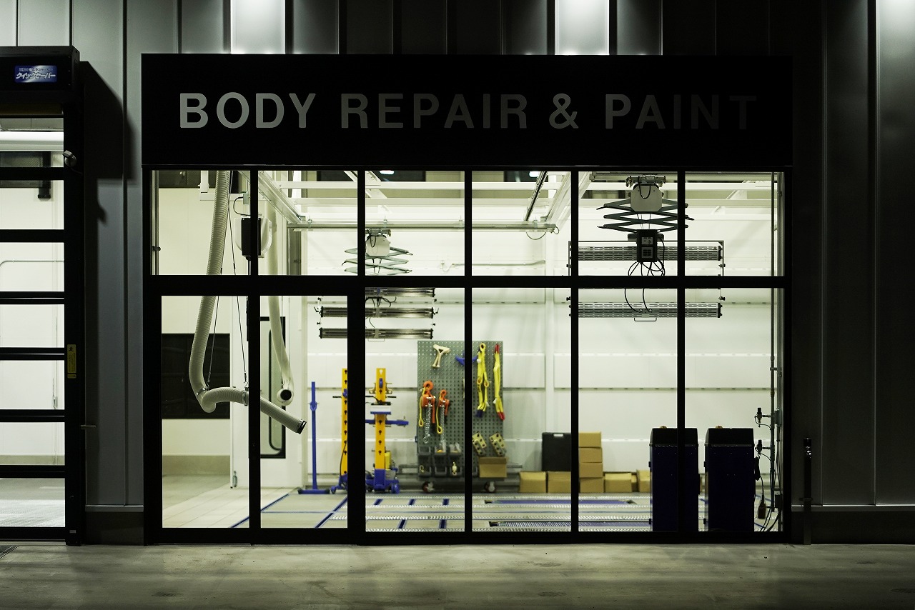 当初、自動車鈑金塗装業で開業した弊社ですが、開業後のニーズに合わせ自動車整備・車検、そして販売、保険と拡大しました。ここまでは良くある自動車屋ですが弊社は自動車の塗装技術を活用し現在、電車の塗装をする部署を立ち上げました。また、事故の無い未来に向けて車内をカスタマイズできるようにと木工部を作り、それぞれのライフスタイルに合わせ“木”を使い、ぬくもりのある車内空間を提供し“コト”や“トキ”を創造しております。しかし本業であります鈑金塗装においては高齢化や若者の自動車離れ、技術の進歩による事故減少といった問題に直面した中で他社との差別化を図る為、モビリティに価値や魅力を感じているお客様へ満足を届けられるように、労働環境・自然環境・モビリティを意識した最新設備導入の鈑金塗装工場を建設いたしました。これにより新技術、新素材にも対応可能となり、輸入車や最新自動車の修理の受け入れも行っております。