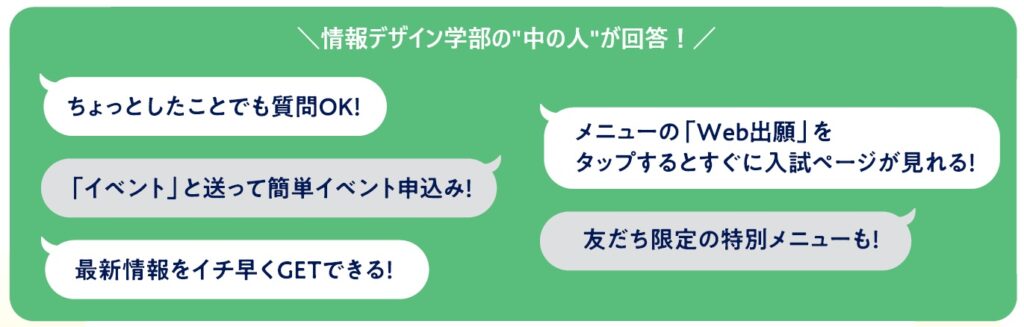 本学部公式LINEのトークルームにてテキストでのやりとりで