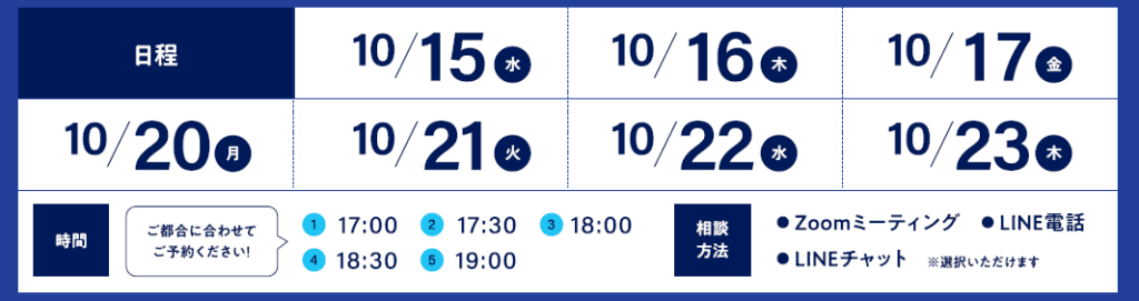 🌟以下の日時から、ご都合に合わせてご予約ください🌟
